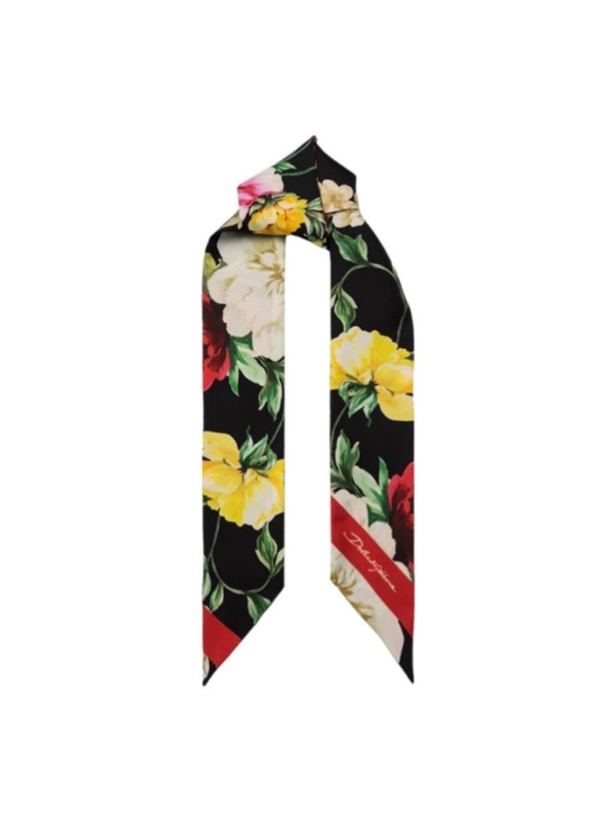 Платок DOLCE & GABBANA твилли черный цветы шелк