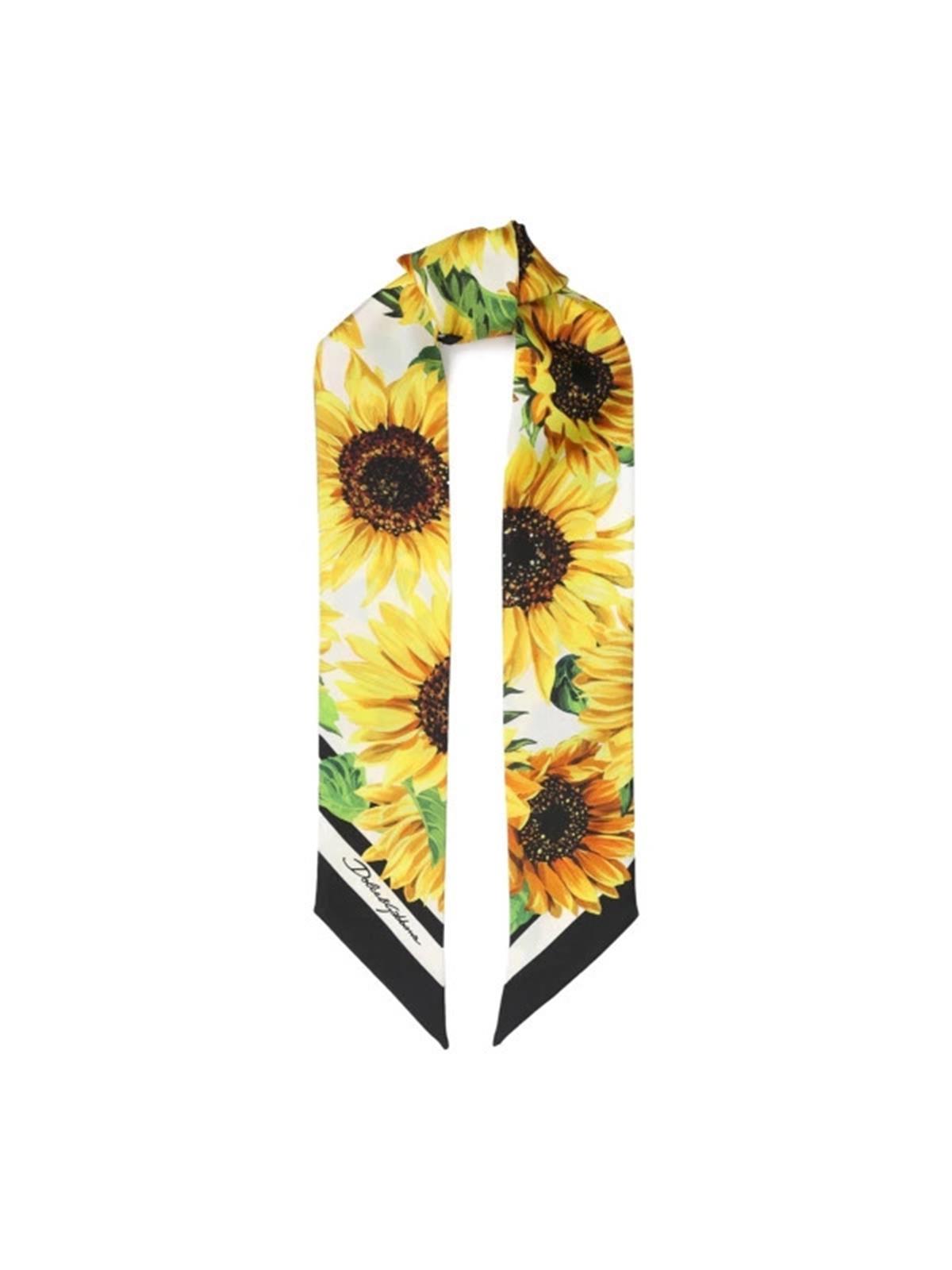 Платок DOLCE & GABBANA твилли белый желтые подсолнухи шелк