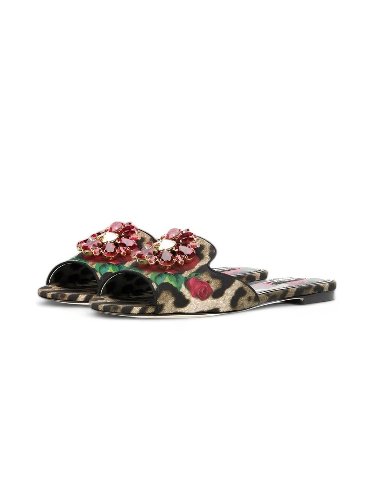 Шлепанцы DOLCE & GABBANA 38 лео коричневые ткань цветок камни красные +пыльник