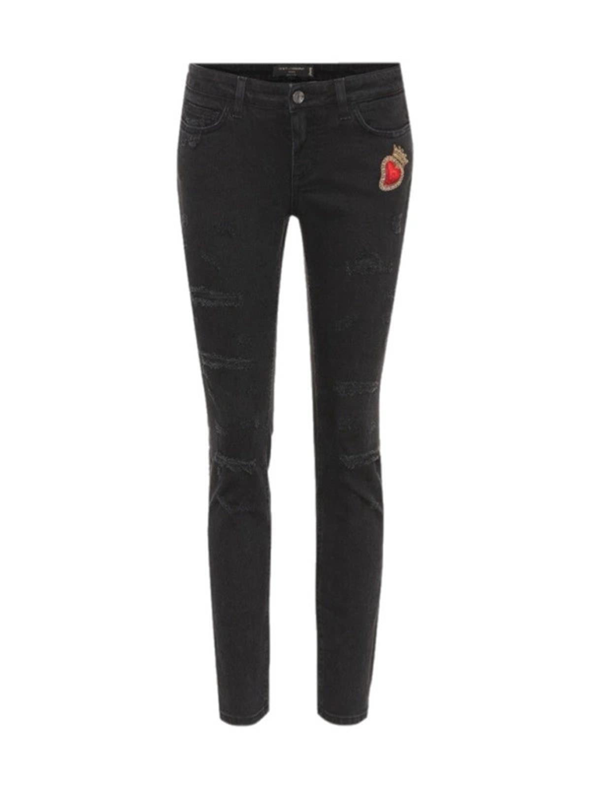 Джинсы DOLCE & GABBANA 40IT черные с разрезами, красное сердце хлопок