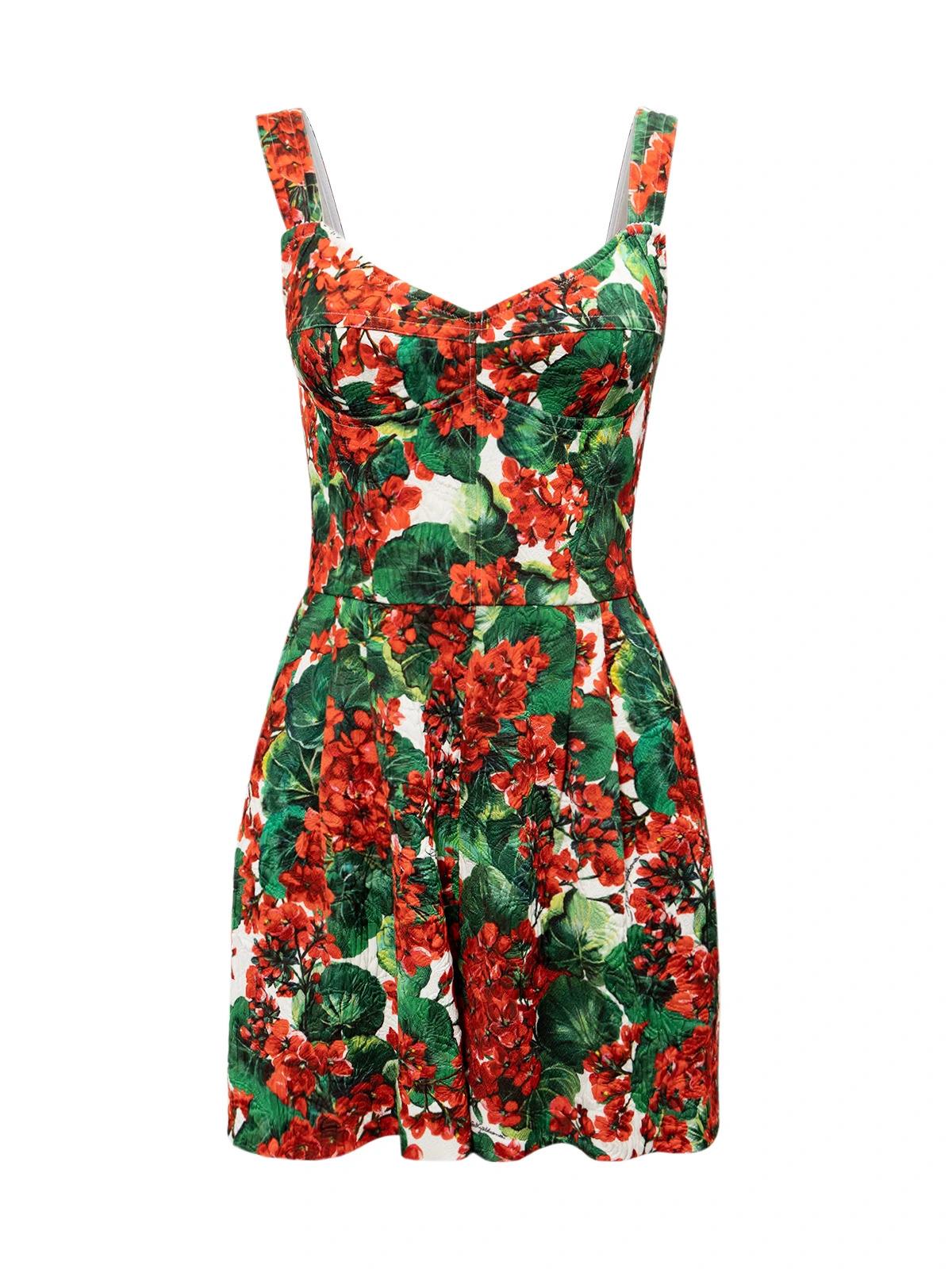 Комбинезон DOLCE & GABBANA IT 40 белый зеленые листья красные цветы на лямках хлопок