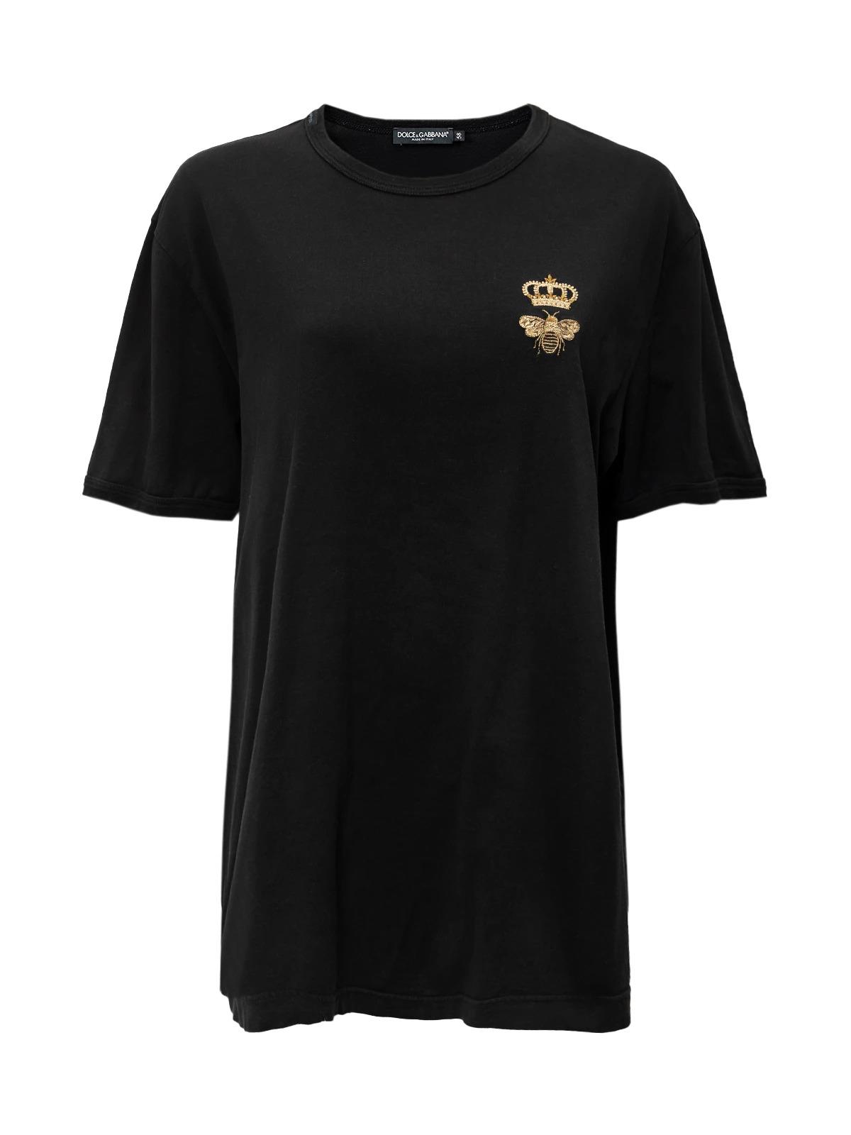 Футболка DOLCE & GABBANA IT 58 черная хлопок золотая вышивка
