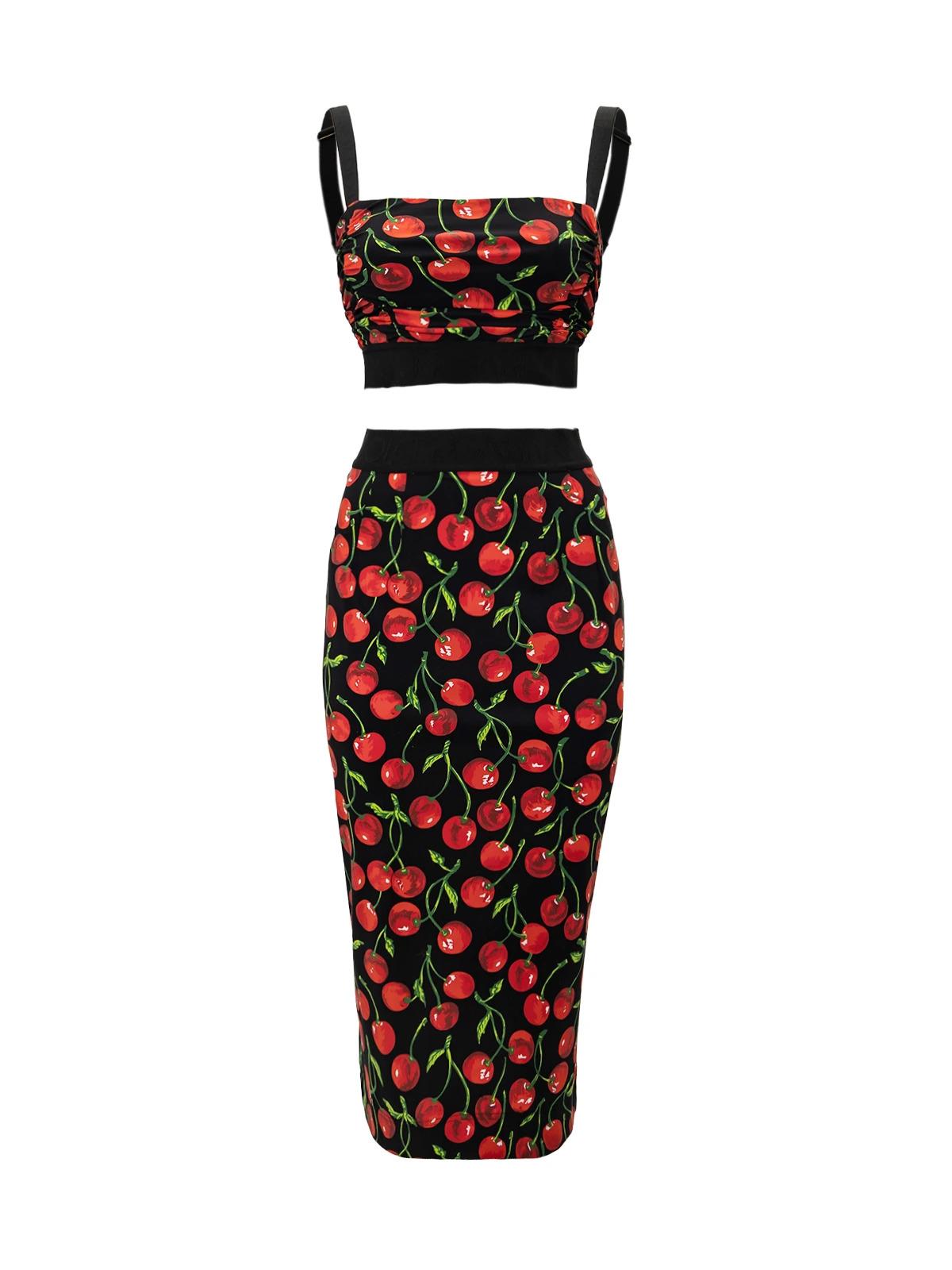 Костюм DOLCE & GABBANA IT 42/40 черный красные вишни юбка топ полиэстер