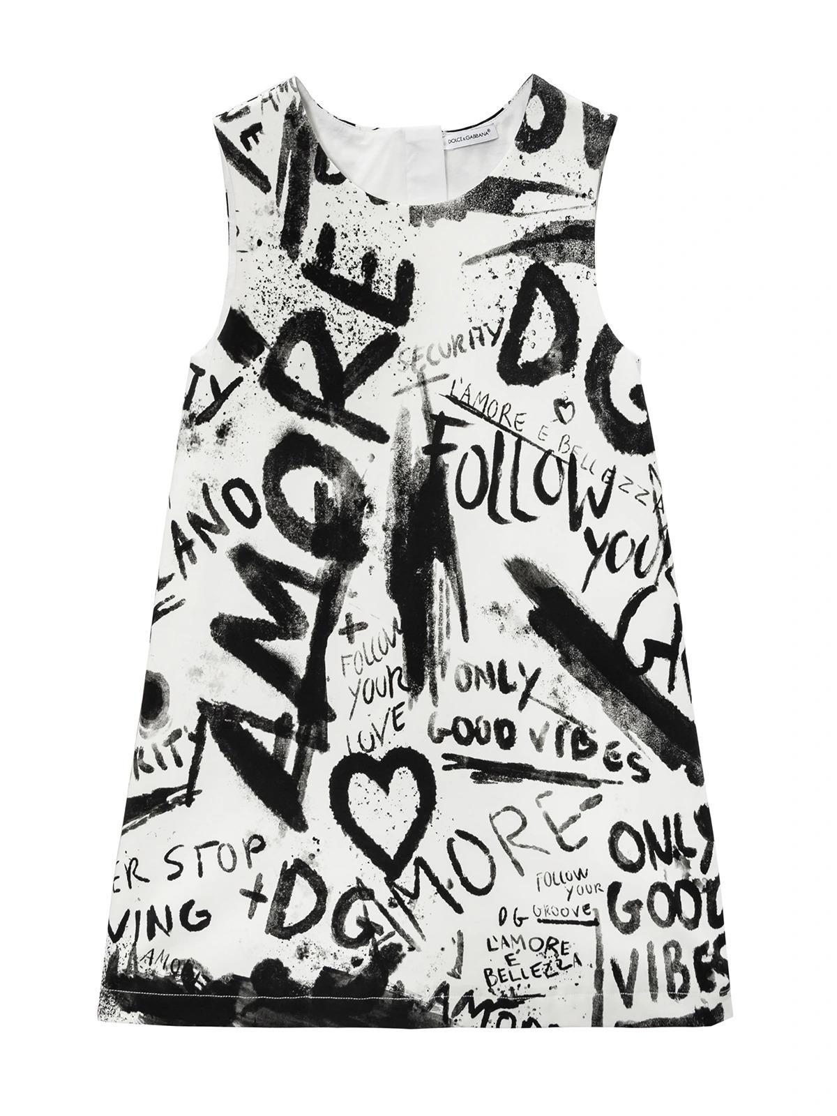 Платье DOLCE & GABBANA 122см белое черные надписи хлопок детское