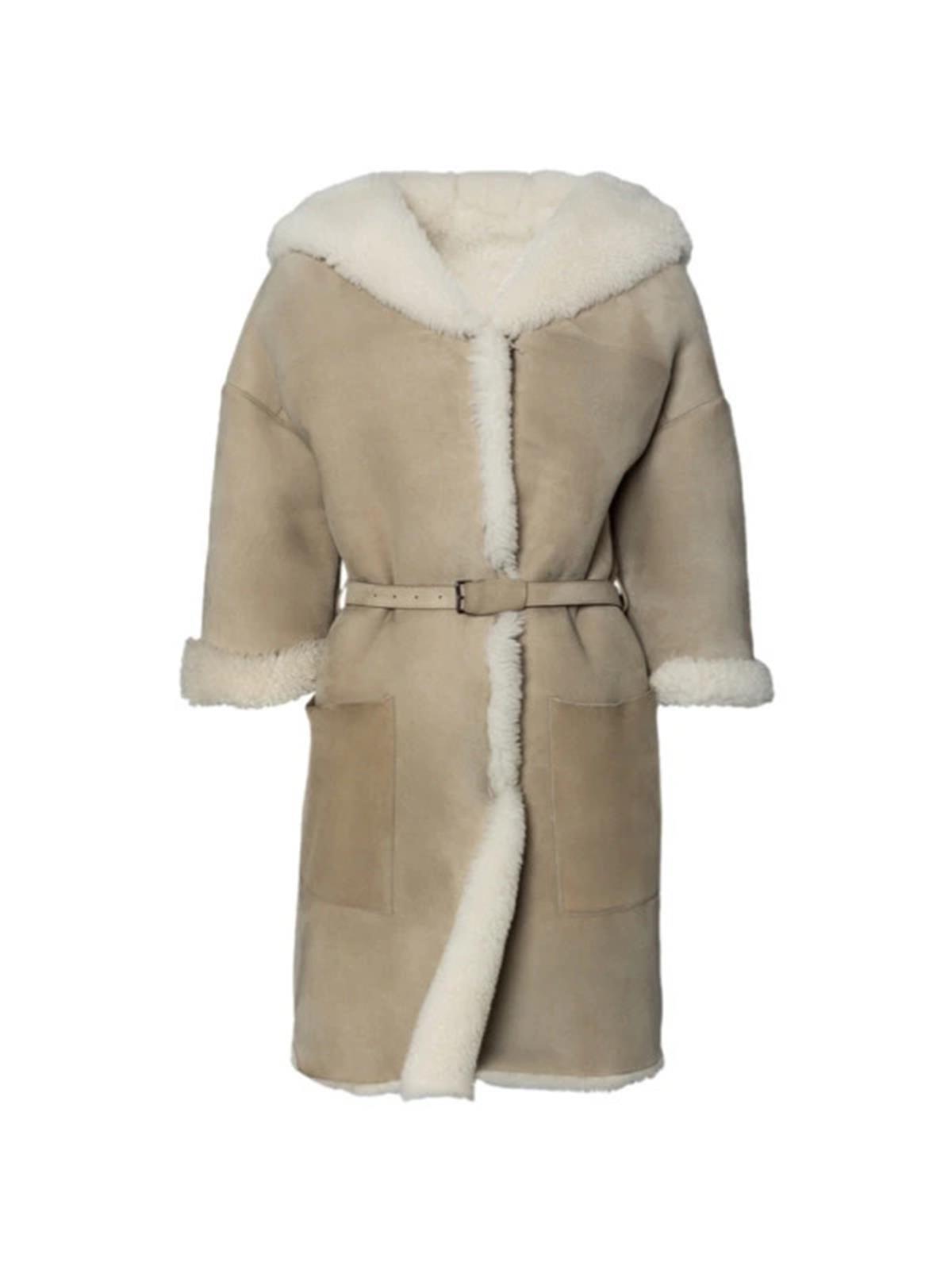 Дубленка ERMANNO SCERVINO 40it бежевая замша белая овчина капюшон