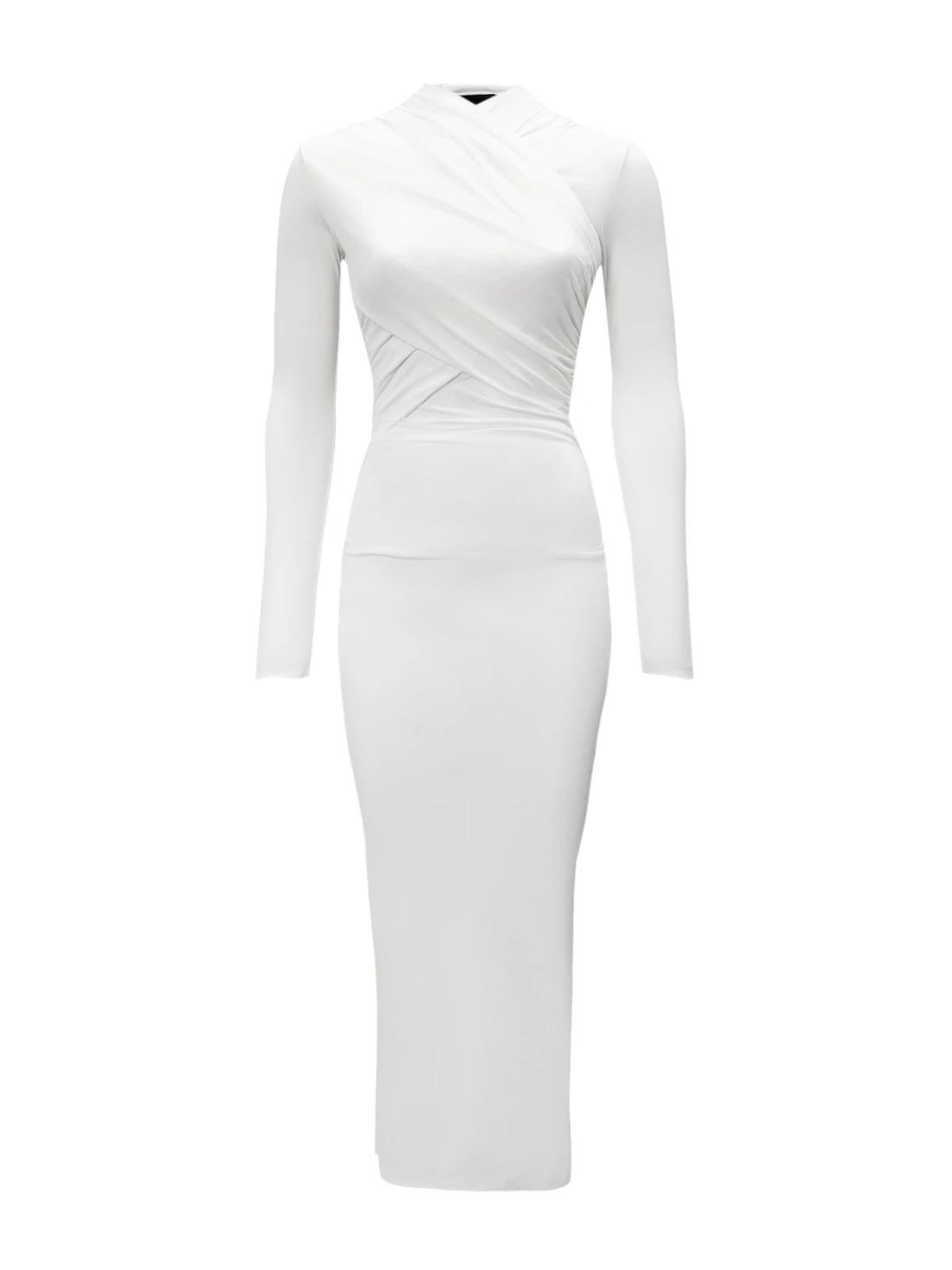 Платье FANTOME DESIGN INT XS белое спереди сборки вискоза