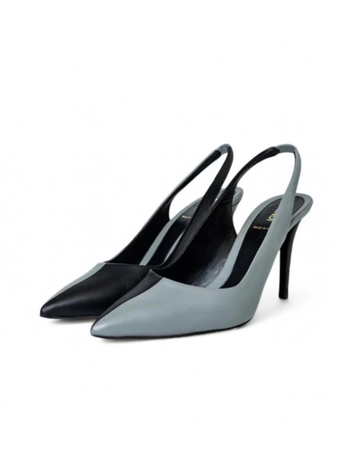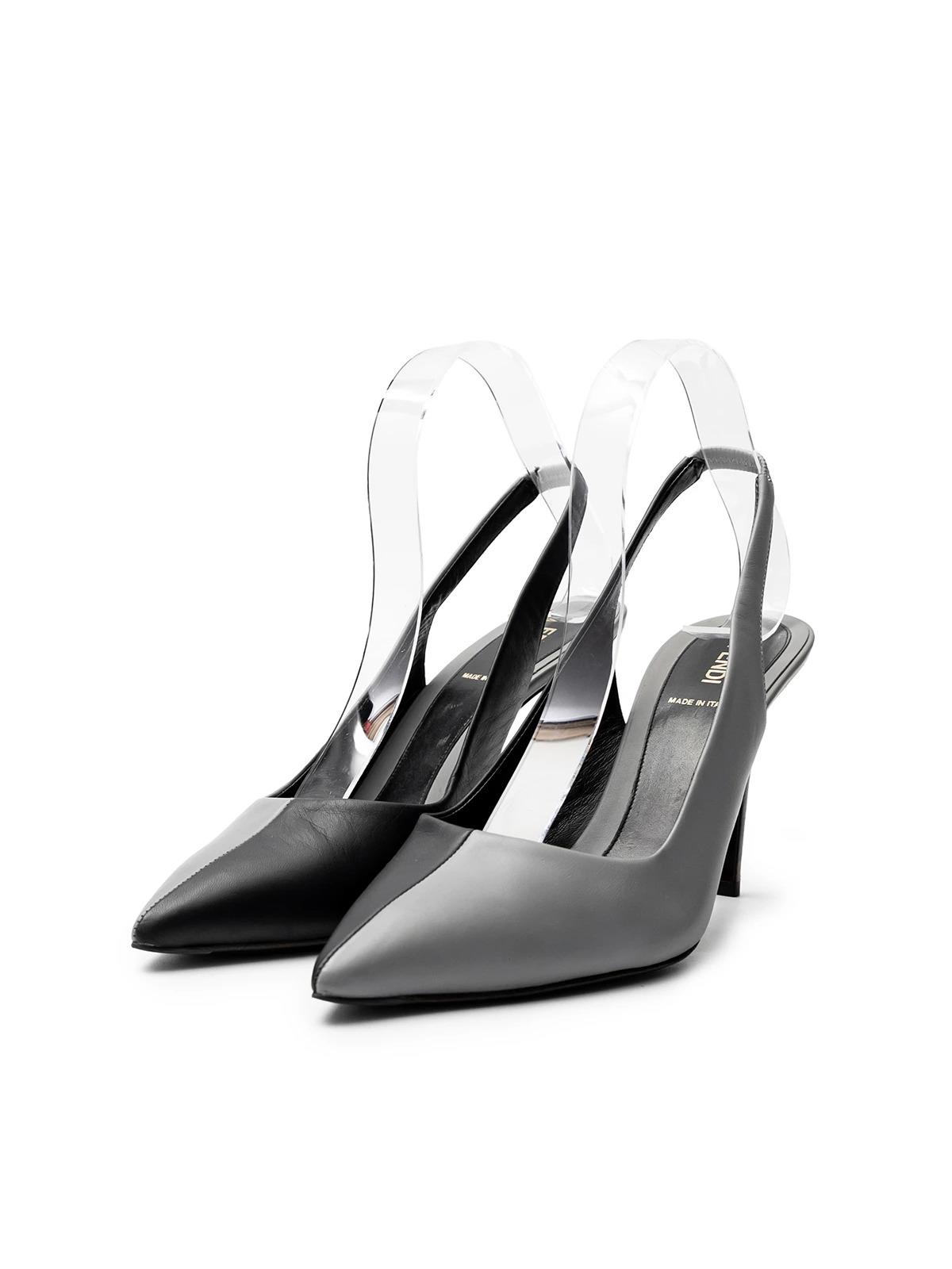 Туфли FENDI 40 черные кожа серые на половину открытая пятка
