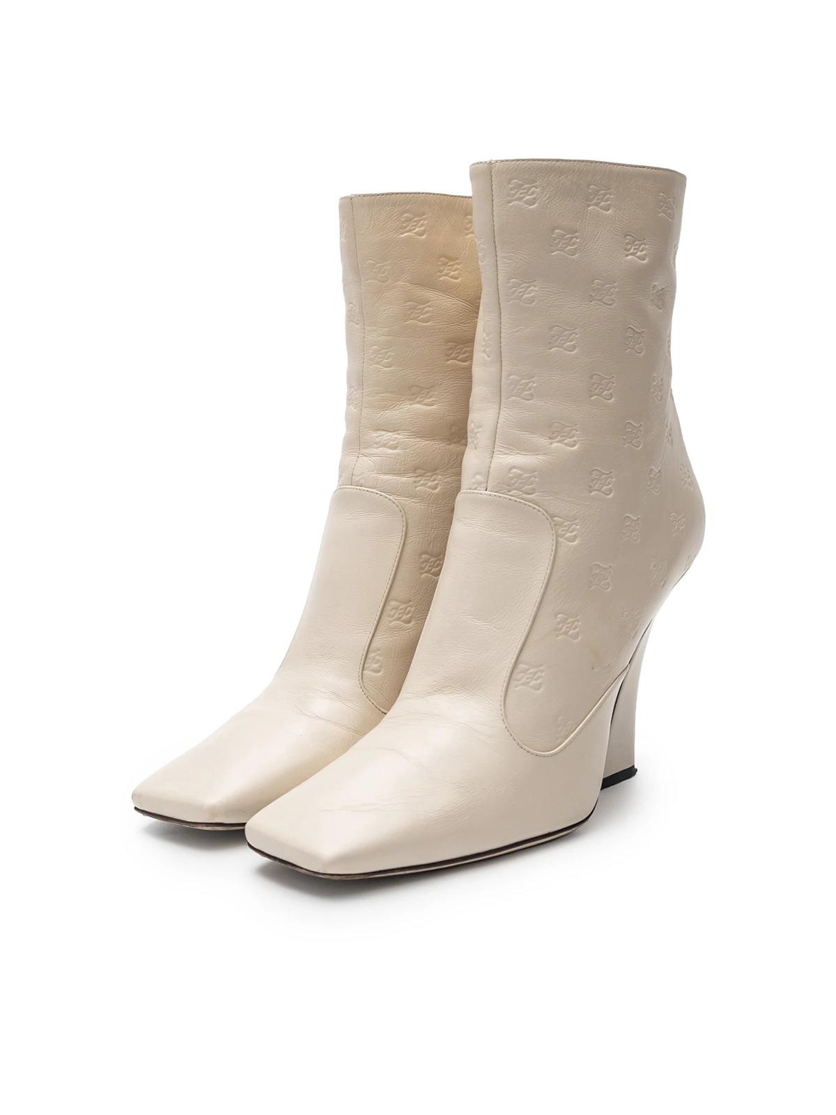 Ботильоны FENDI EU 40 бежевые выбитое лого кожа