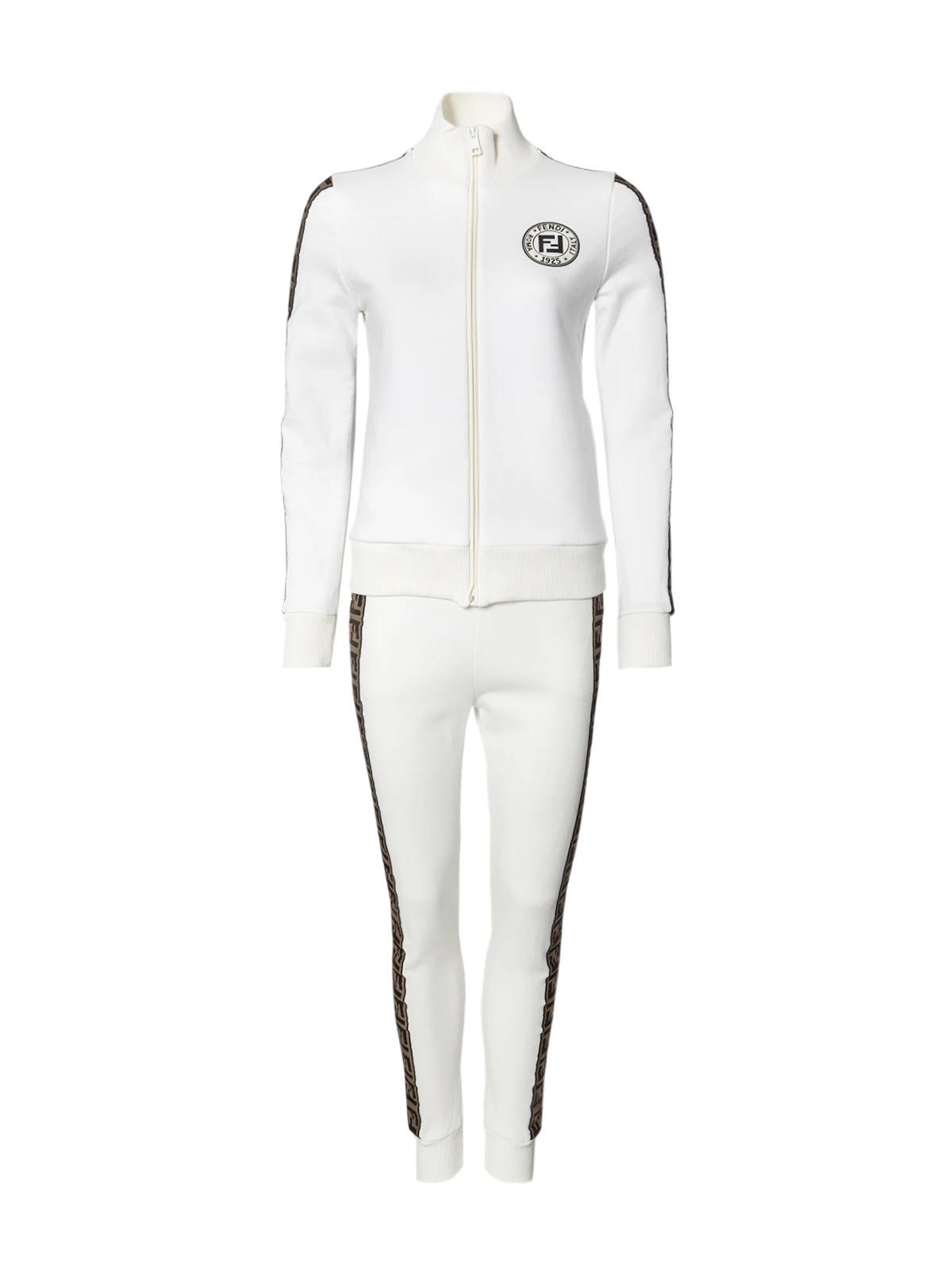 Костюм FENDI IT 40 белый с лампасами в лого толстовка на молнии брюки