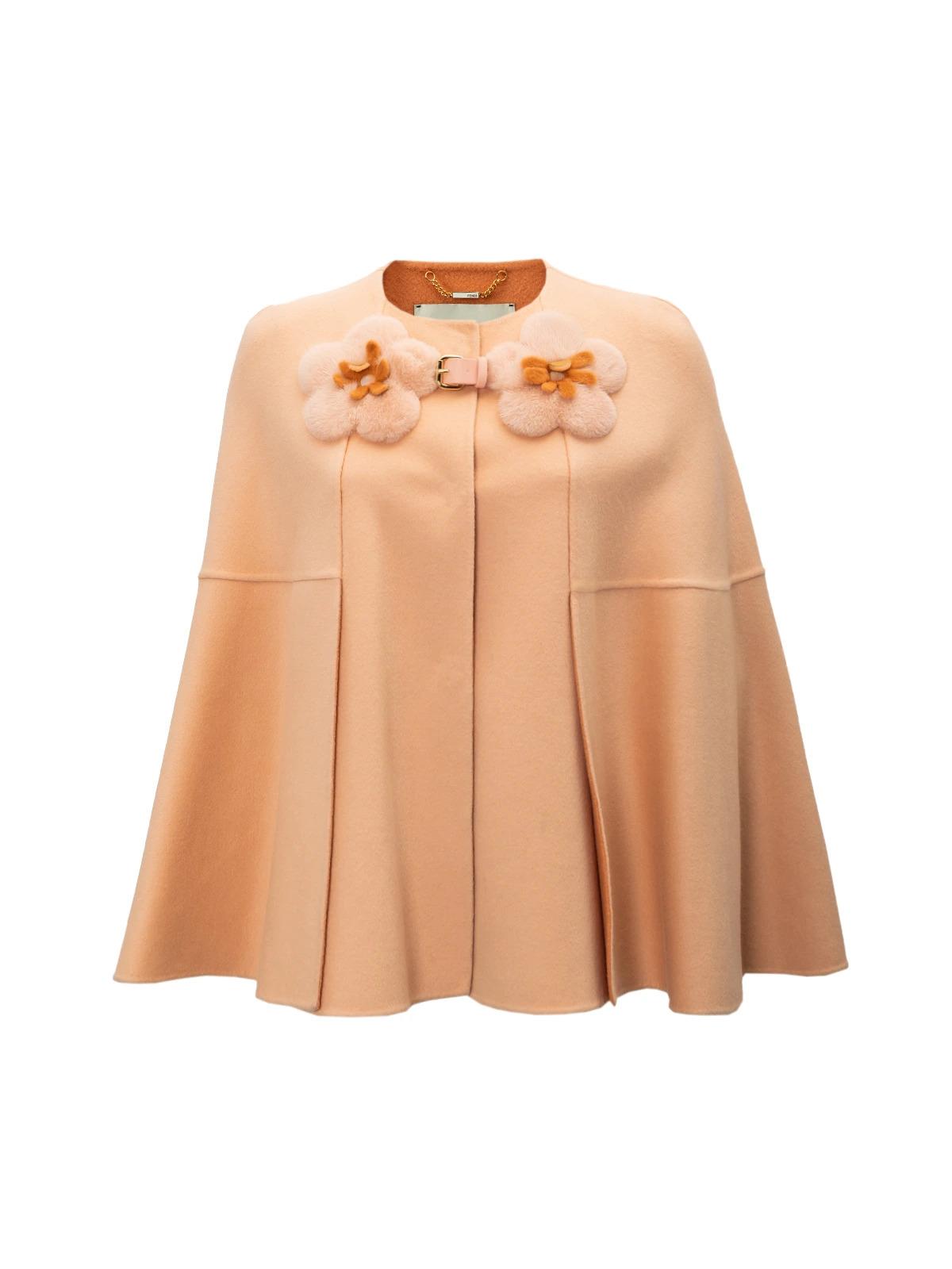Пальто FENDI IT 40 розовое кейп отделка цветы норка кашемир
