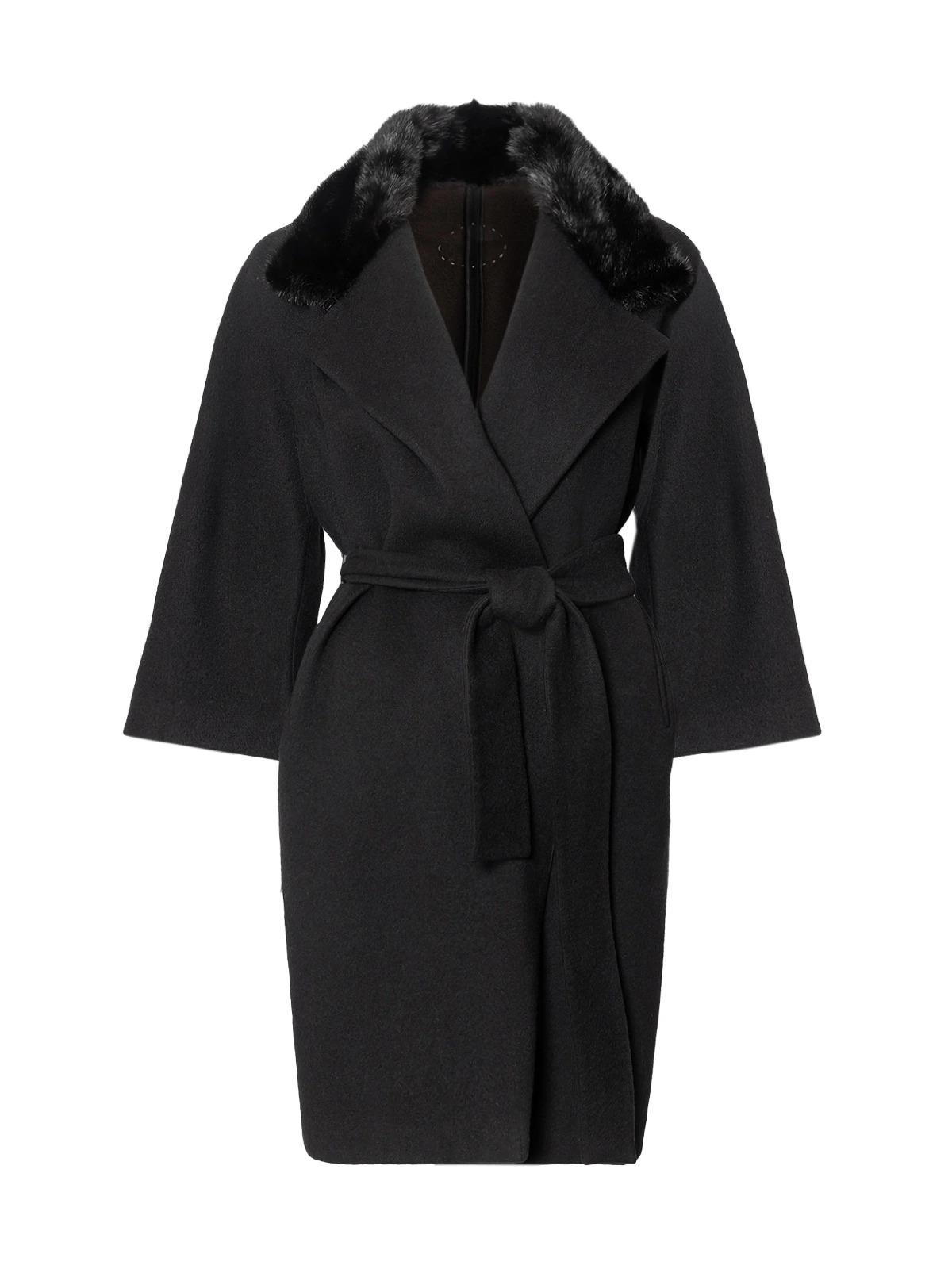 Пальто FENDI IT 38 черное кашемир рукав 3/4 воротник норка пояс