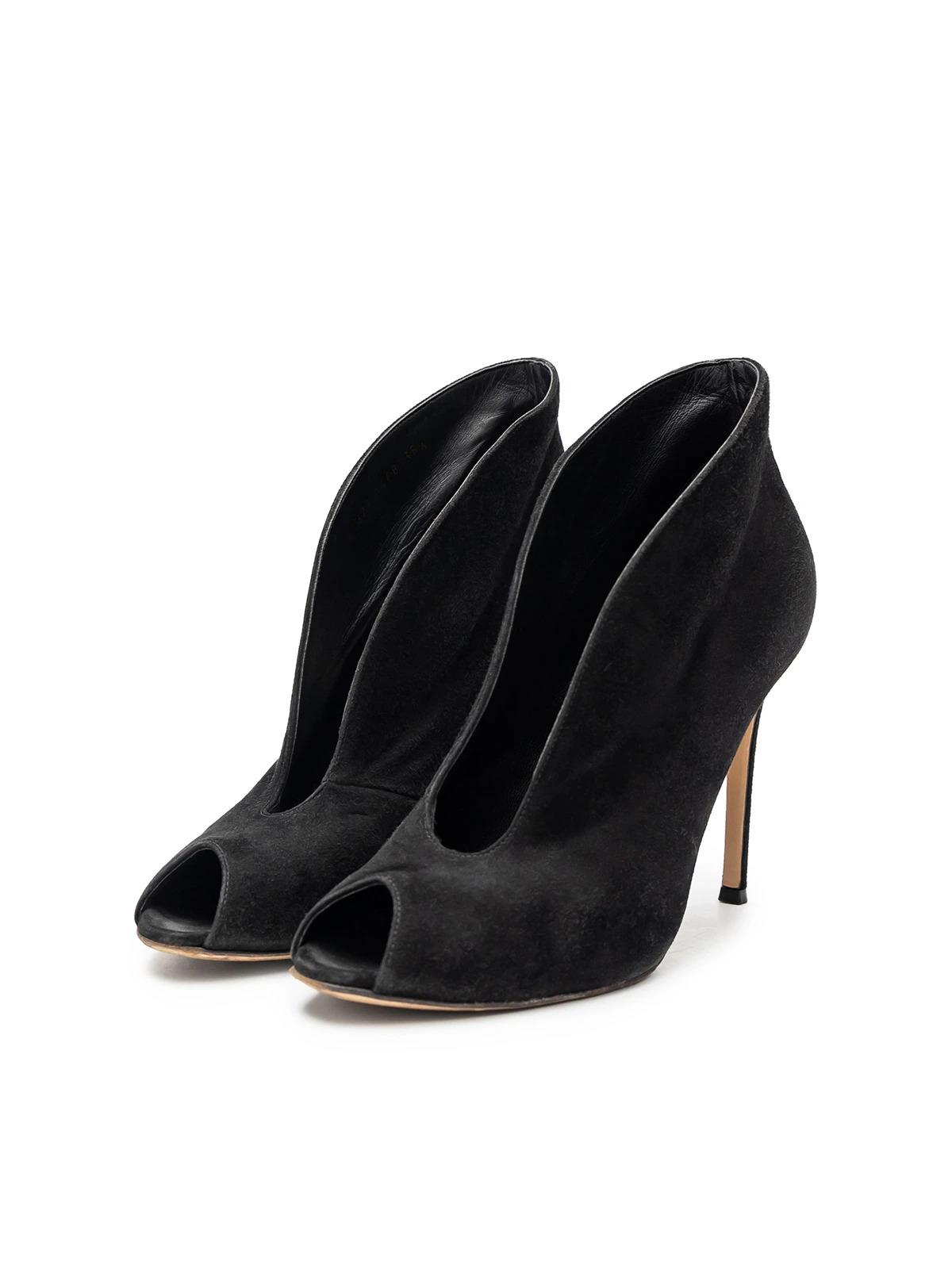 Ботильоны GIANVITO ROSSI 38.5 черные замша вырез открытый мыс