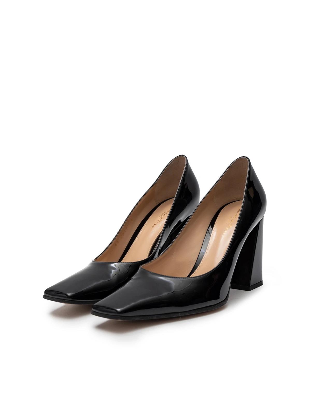 Туфли GIANVITO ROSSI 39.5 черные лак квадратный нос ширкий каблук +пыльник
