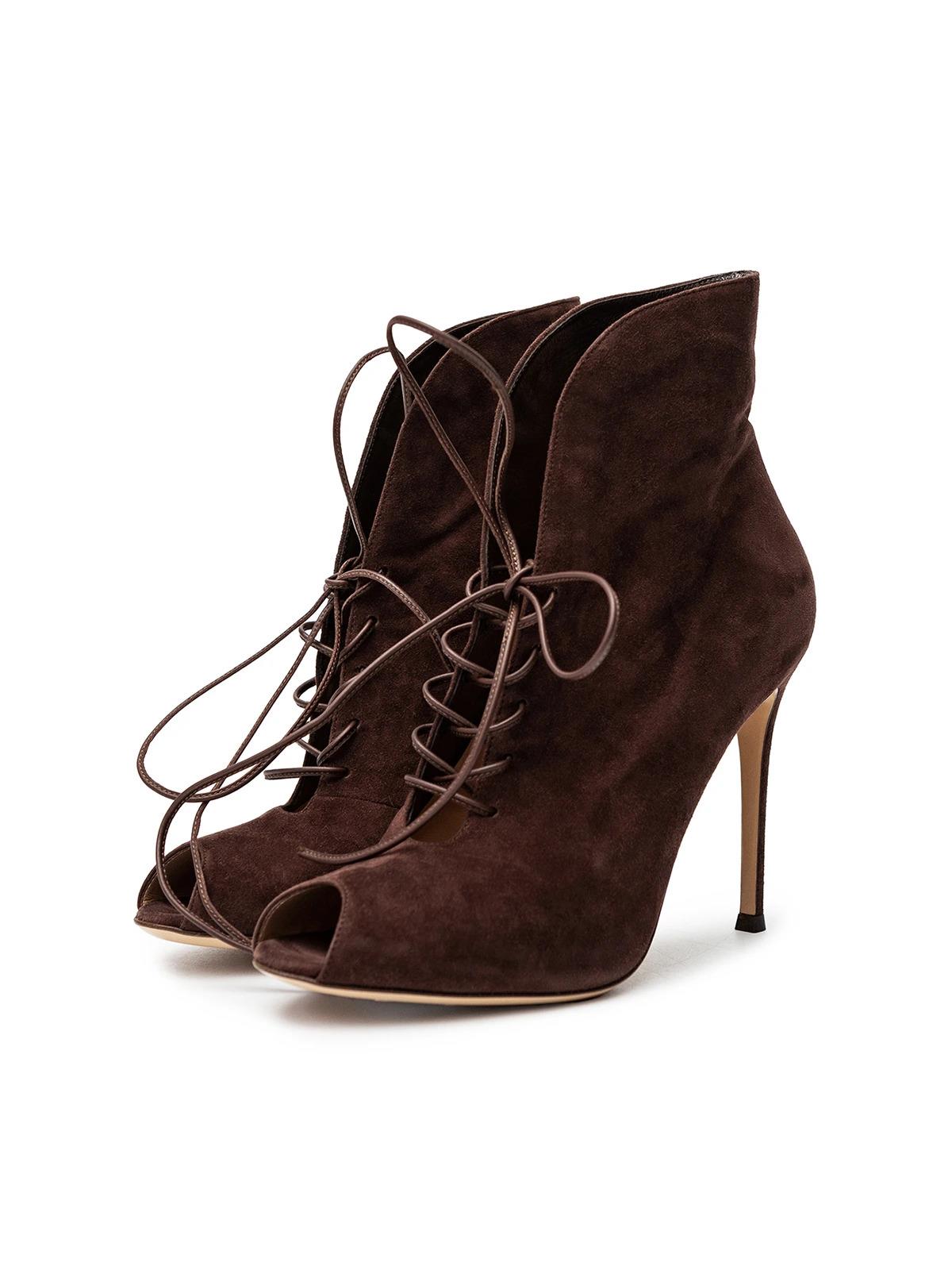 Ботильоны GIANVITO ROSSI EU 39.5 коричневые замша шнурки открытый нос