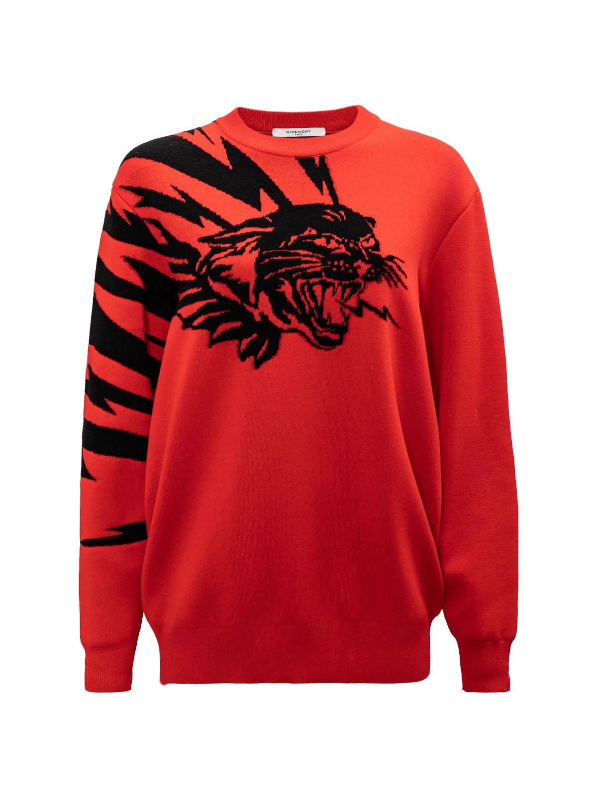 Джемпер GIVENCHY INT XS красный черный тигр шерсть