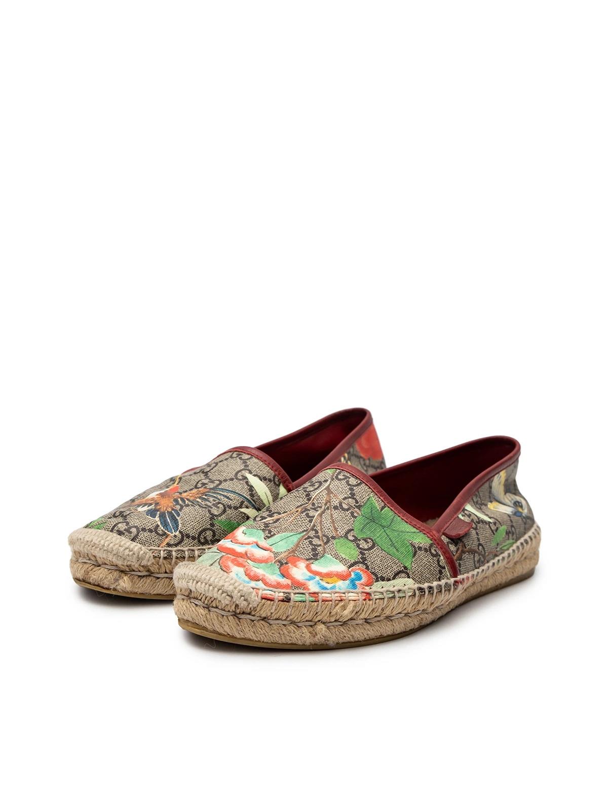 Эспадрильи GUCCI 38.5 бежевые кожа лого цветы