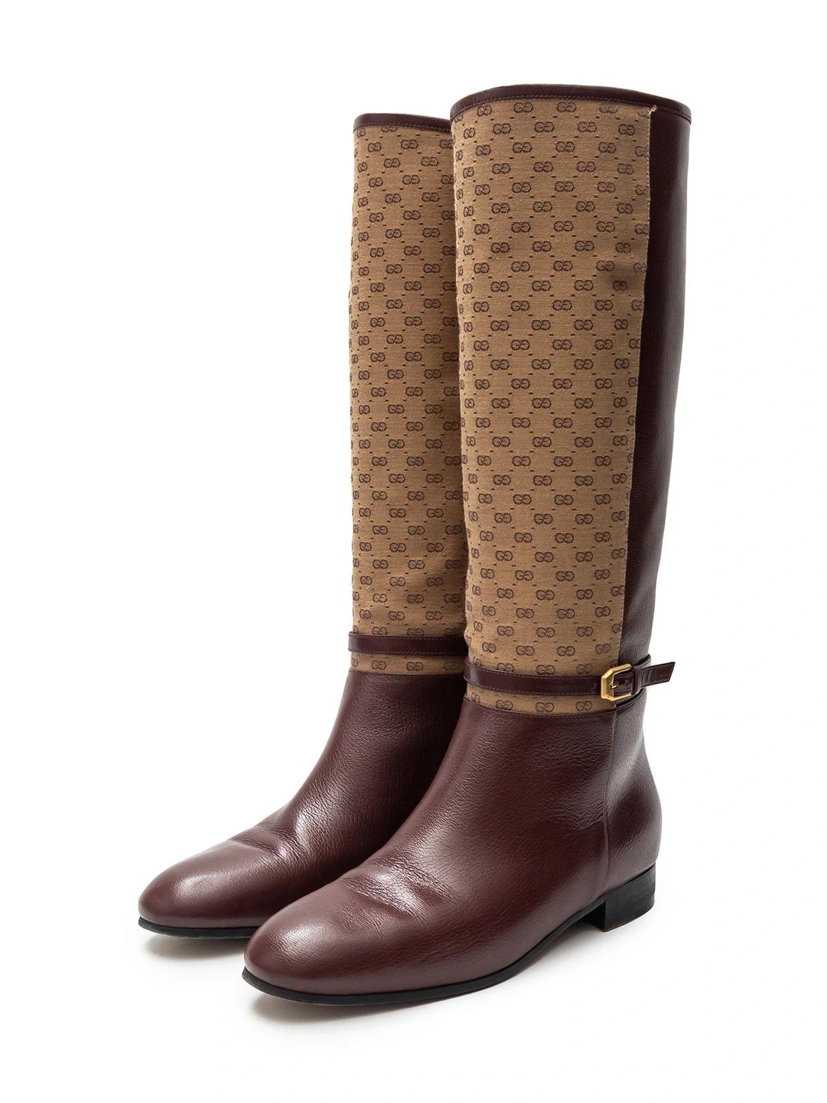 Сапоги GUCCI EU 36.5 бордовые кожа вставка бежевая ткань в лого