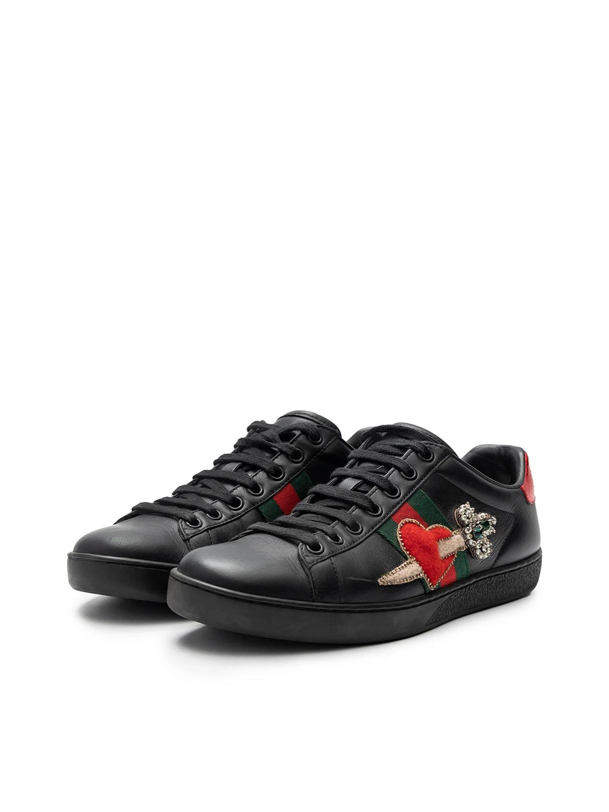 Кеды GUCCI EU 36.5 черные кожа разноцветные пятки красное сердце