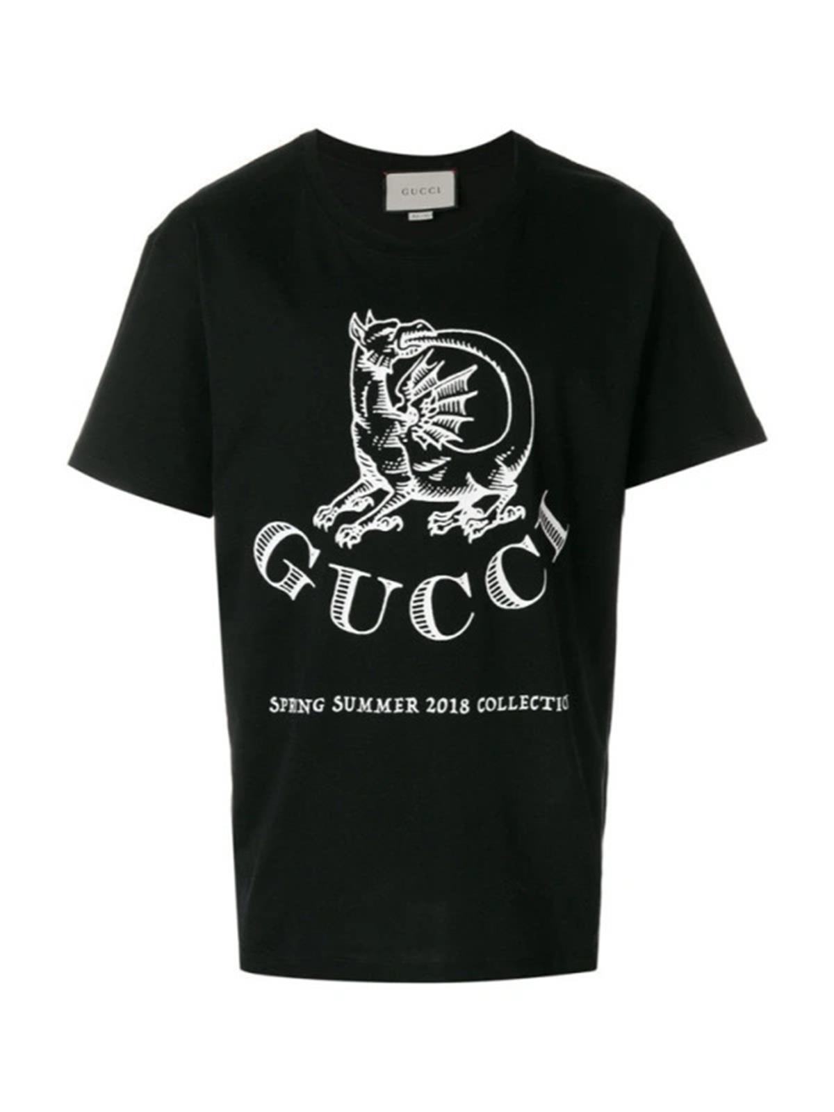 Футболка GUCCI INT M черная рисунок дракон Мужская хлопок
