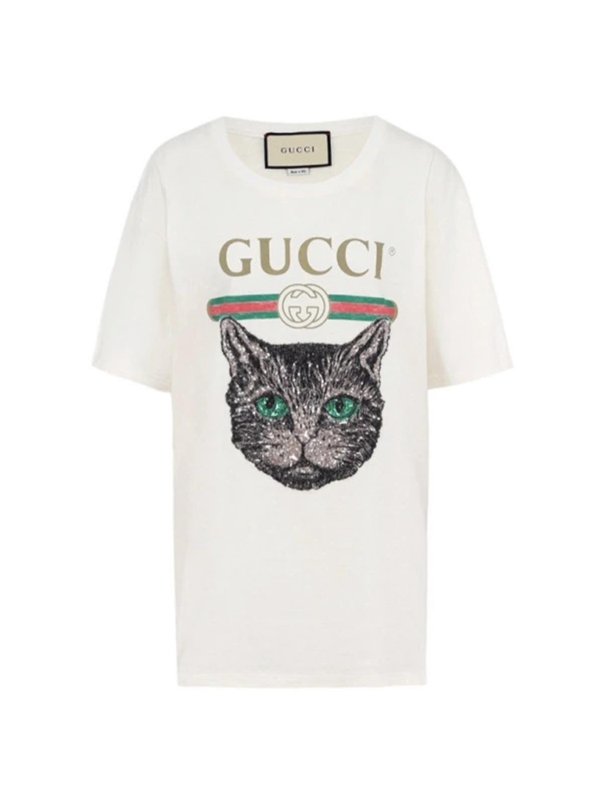 Футболка GUCCI INT M белая хлопок кот в паетках