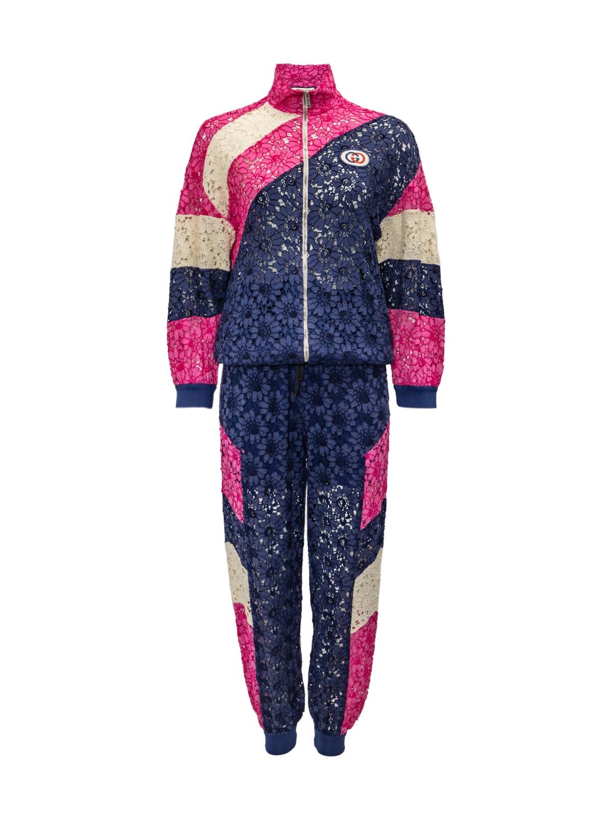 Костюм GUCCI INT XS синий белые розовые вставки кружевной толстовка брюки хлопок