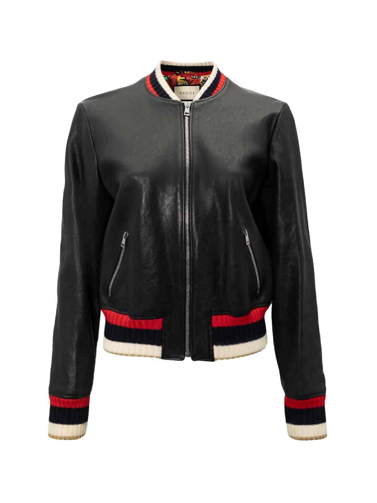 Куртка GUCCI IT 48 черная кожа красная надпись на спине