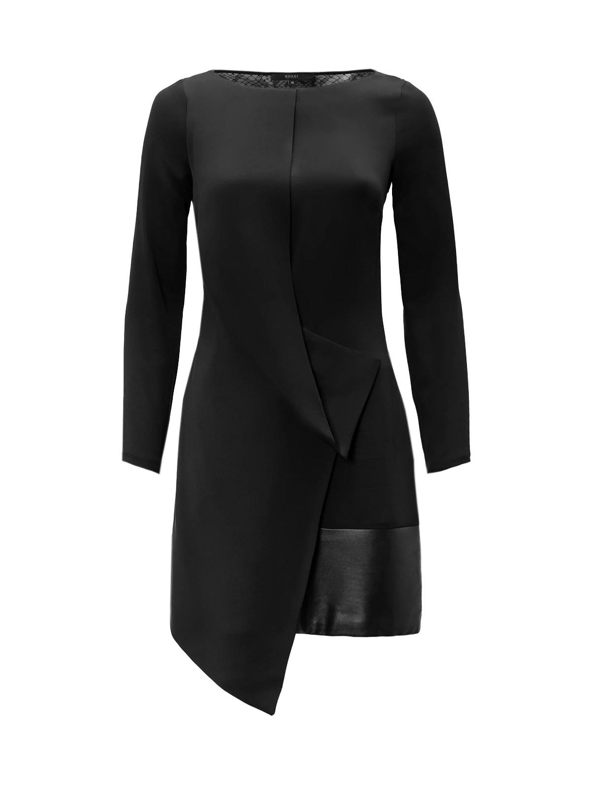 Платье GUCCI IT 38 черное кружевная спинка кожаные вставки вискоза
