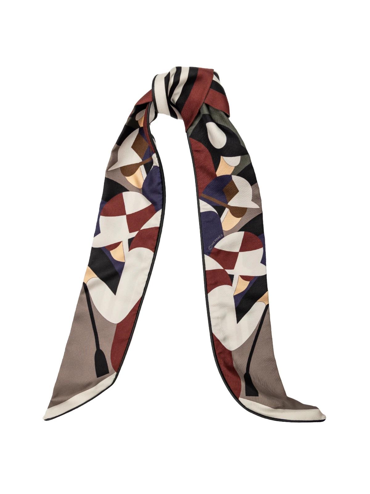 Платок HERMES твилли белый бордовые зеленые вставки черный кожаный кант шелк коробка