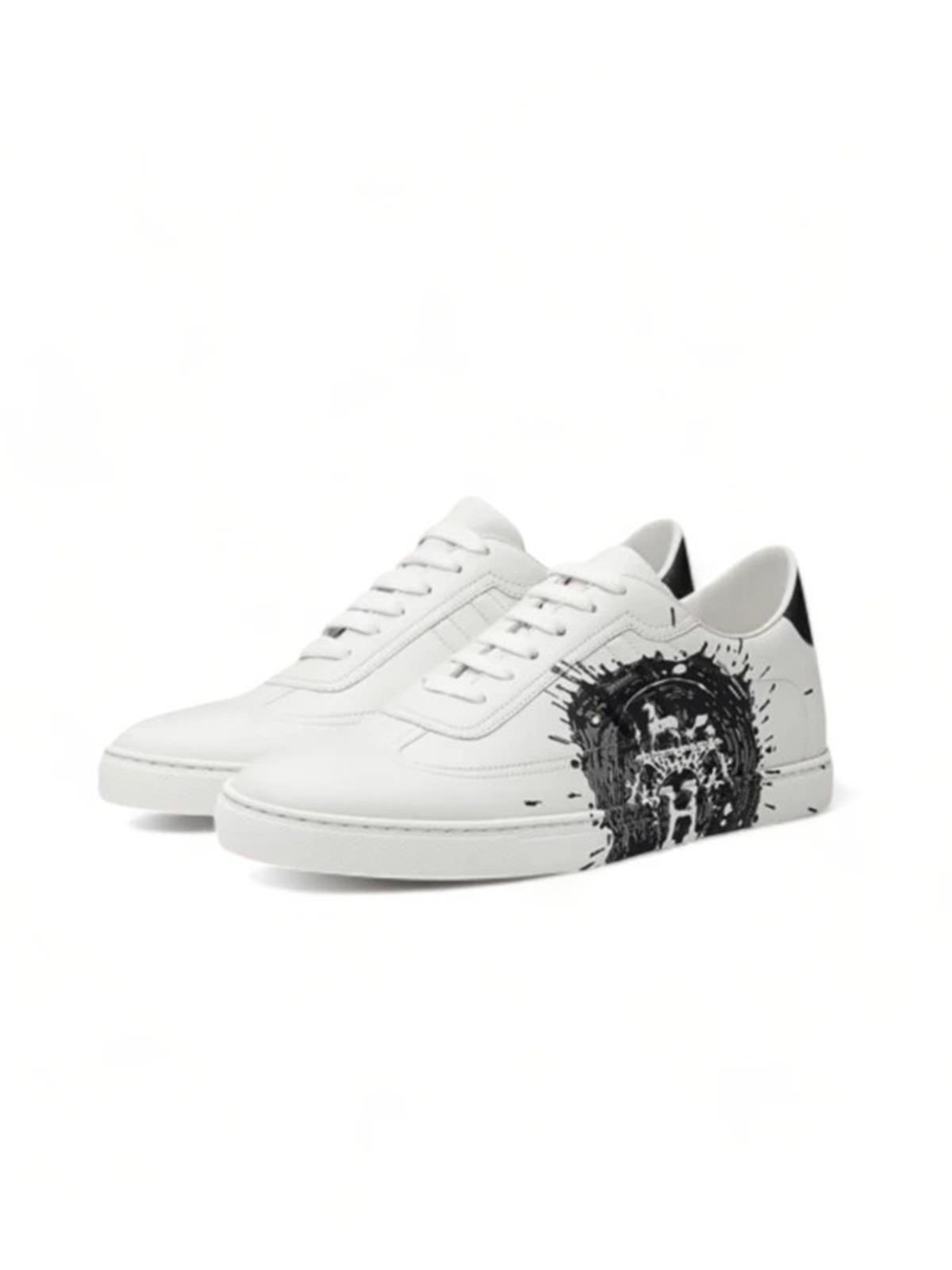 Кеды HERMES 37 белые кожа черное лого +коробка +пыльник
