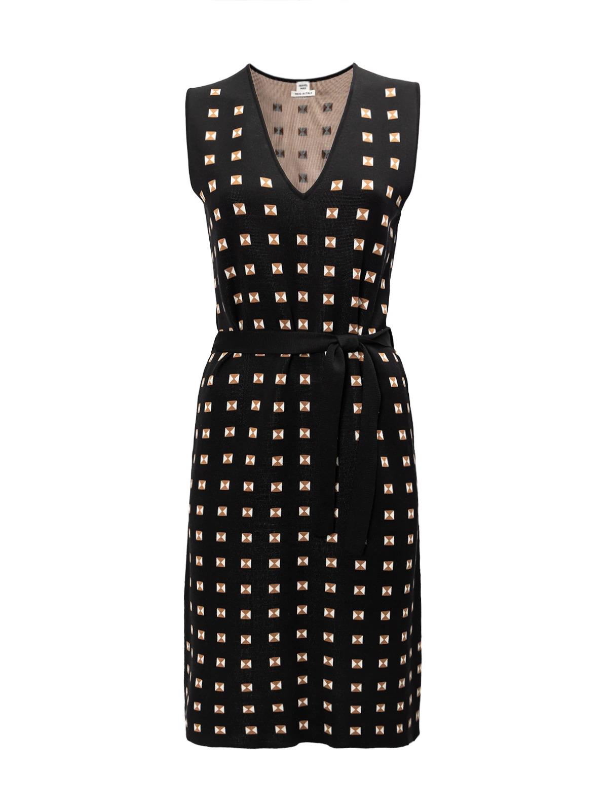 Платье HERMES FR 38 черное в ромбы без рукавов с поясом шелк