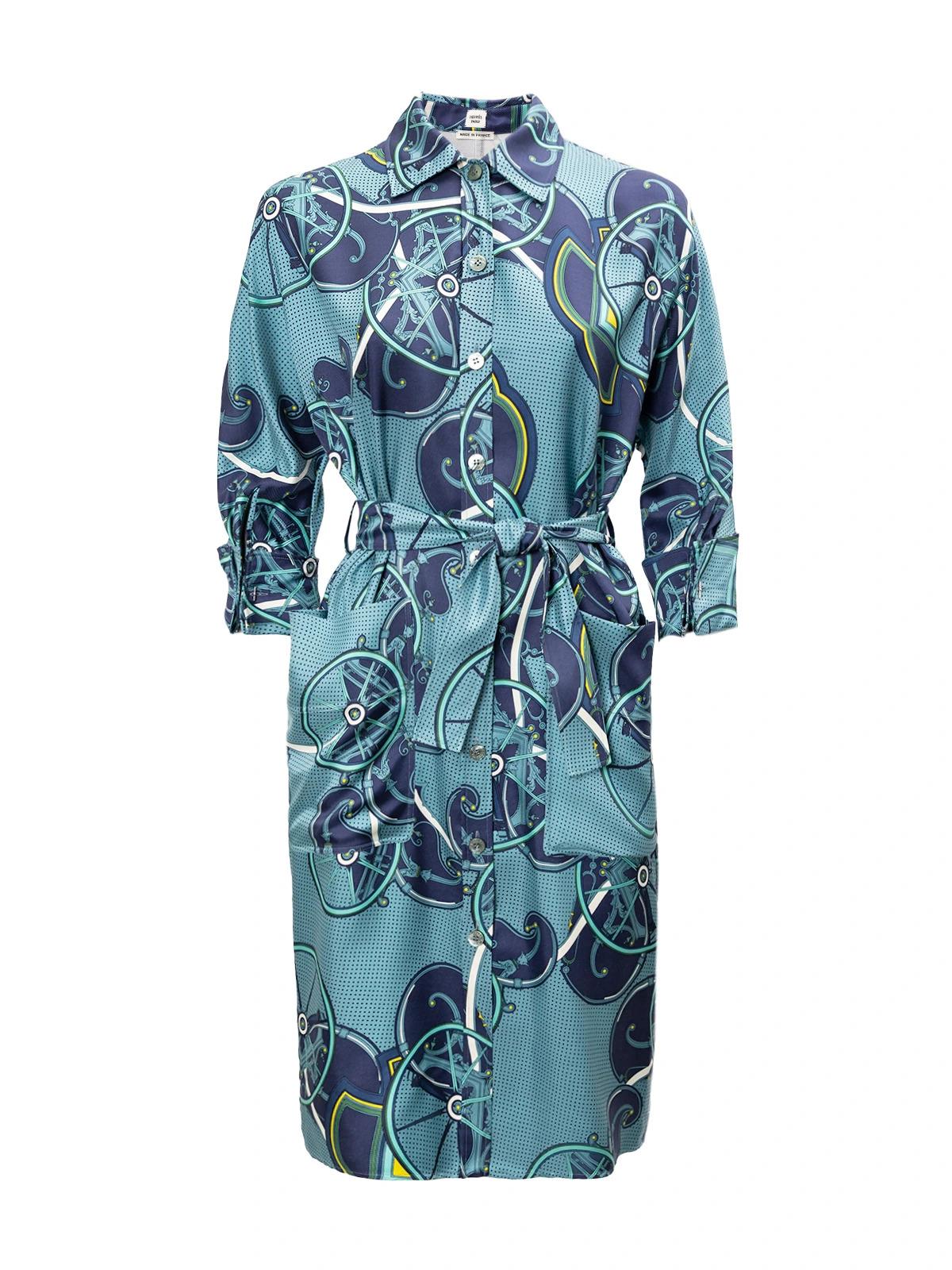 Платье HERMES FR 34 голубое шелк узоры на пуговицах два кармана пояс