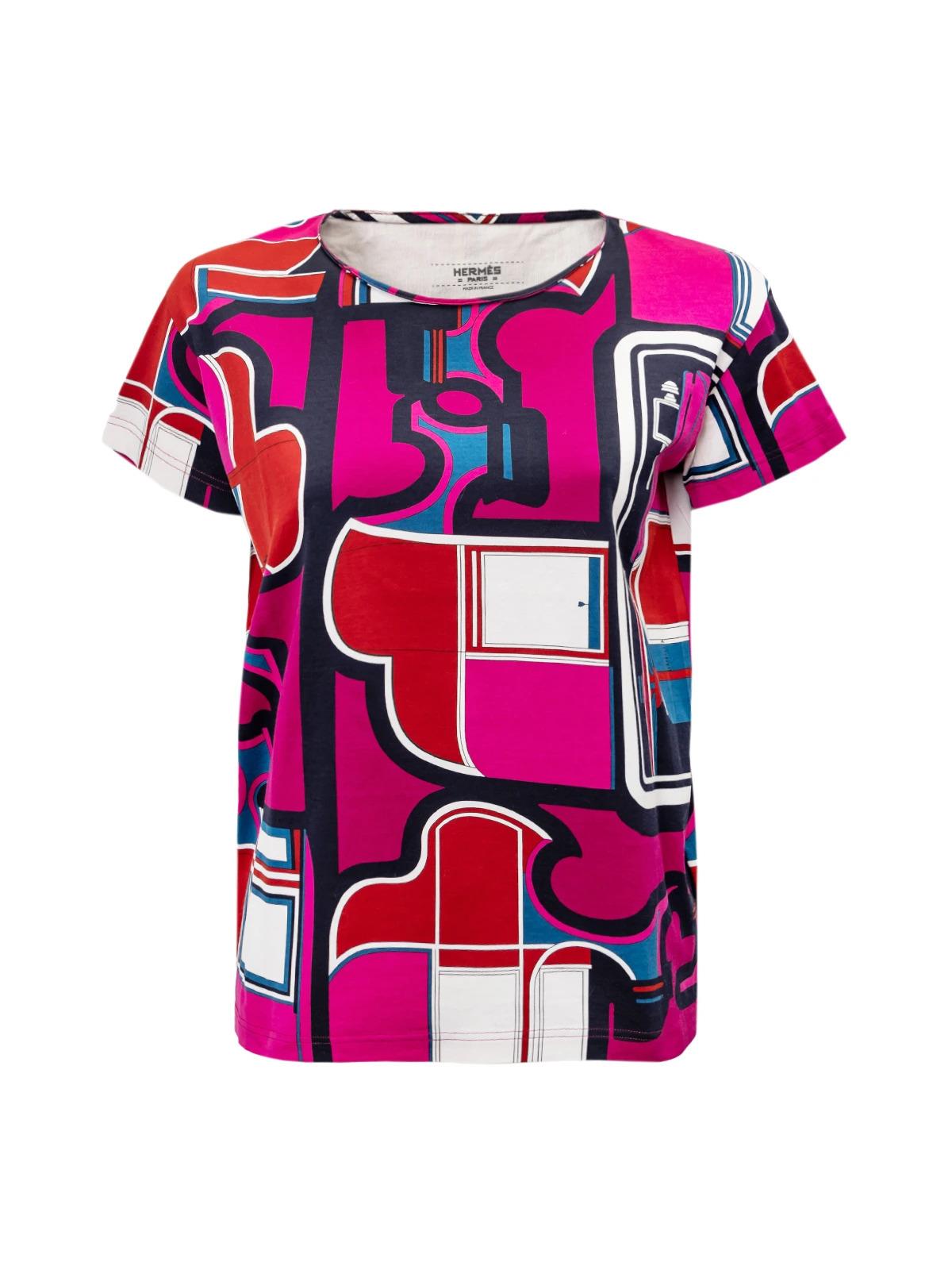 Футболка HERMES FR 34 розовая синий белый рисунок хлопок