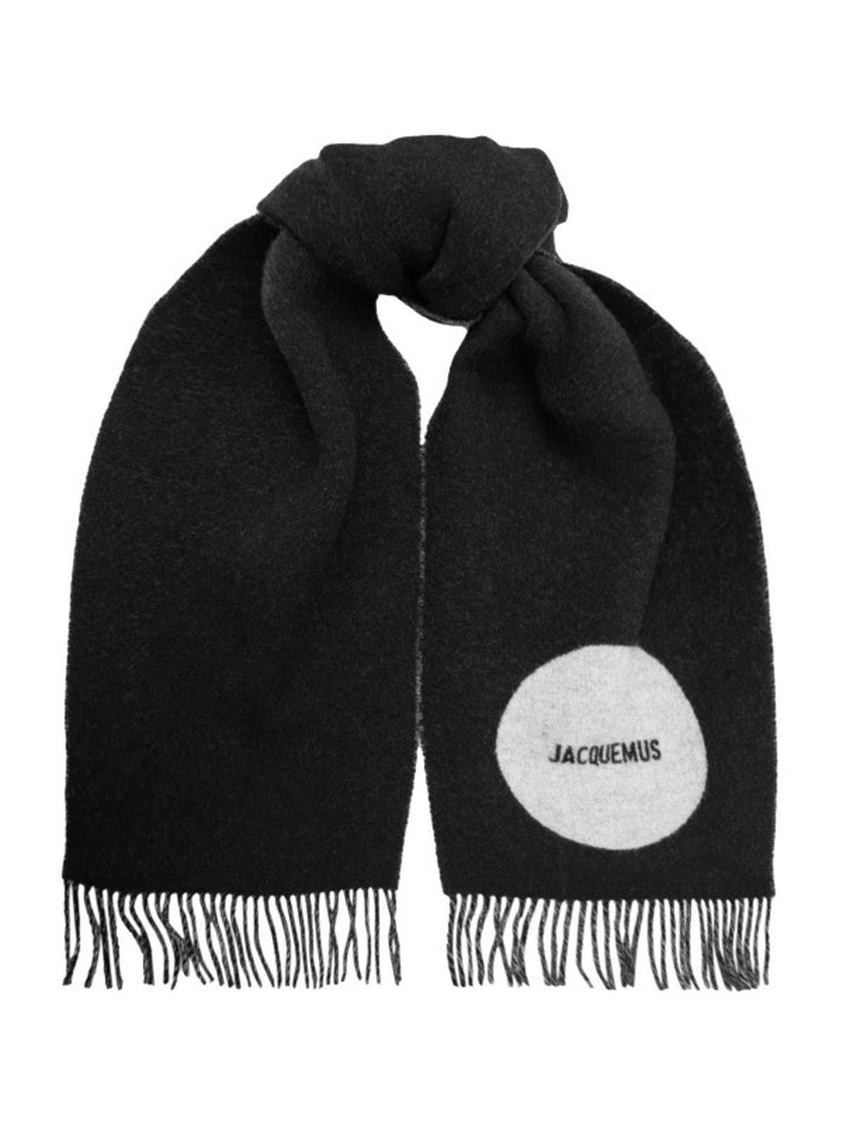 Шарф JACQUEMUS черный серое круглое лого шерсть