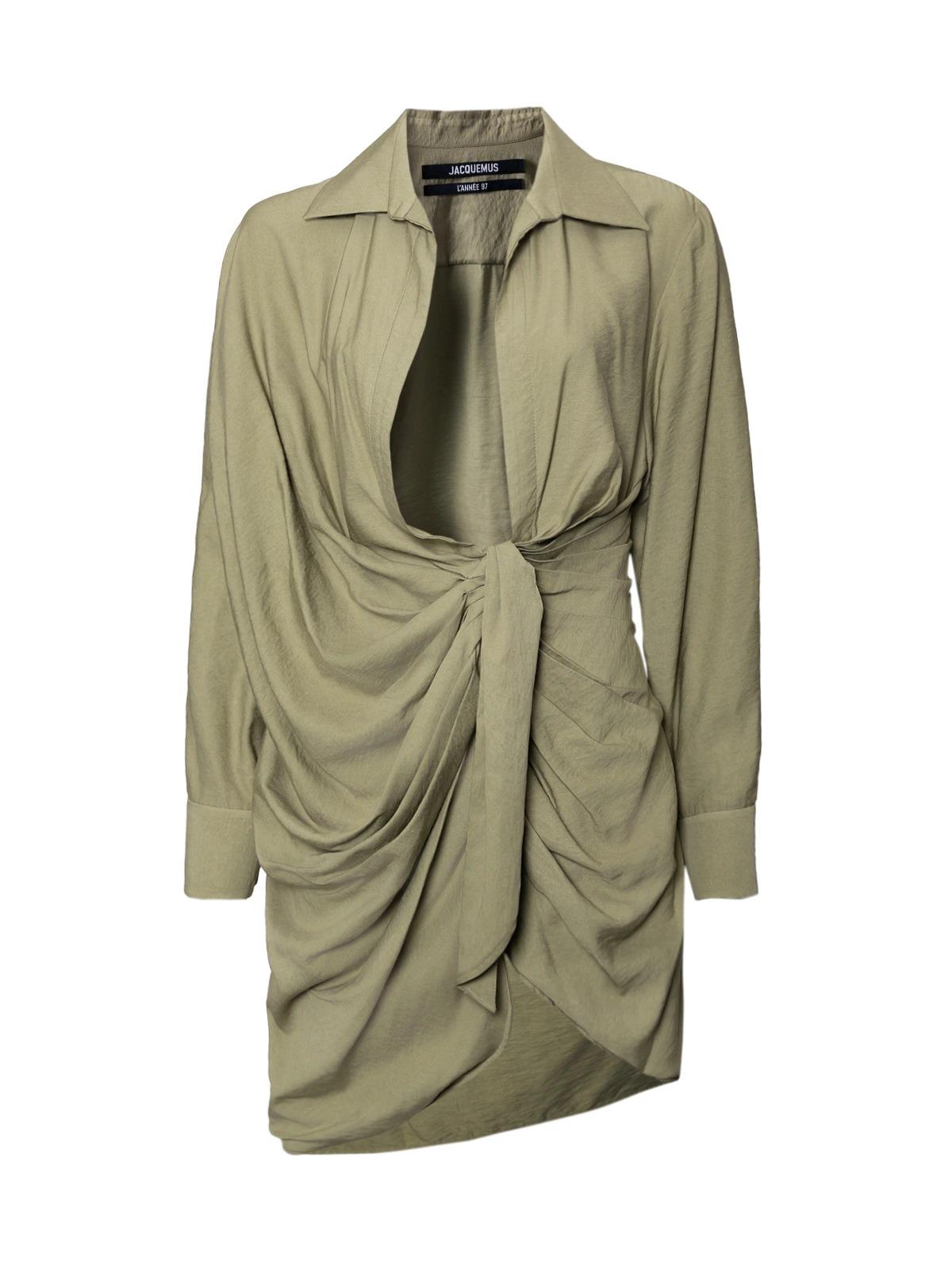 Платье JACQUEMUS FR 40 зеленое сборка длинный рукав вискоза