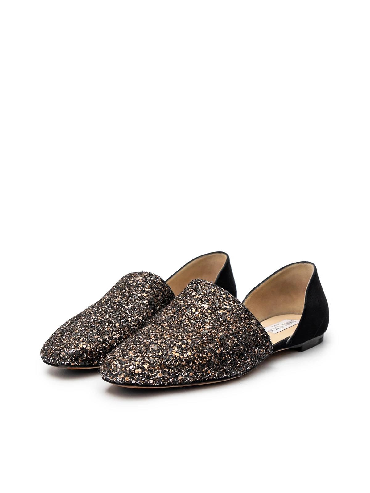 Лоферы JIMMY CHOO 36.5 черные замша спереди золотой глиттер