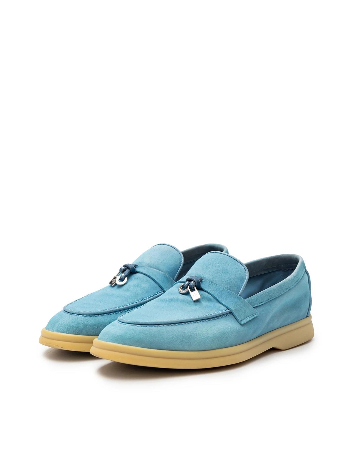 Лоферы LORO PIANA EU 36 голубые замша серебряное лого