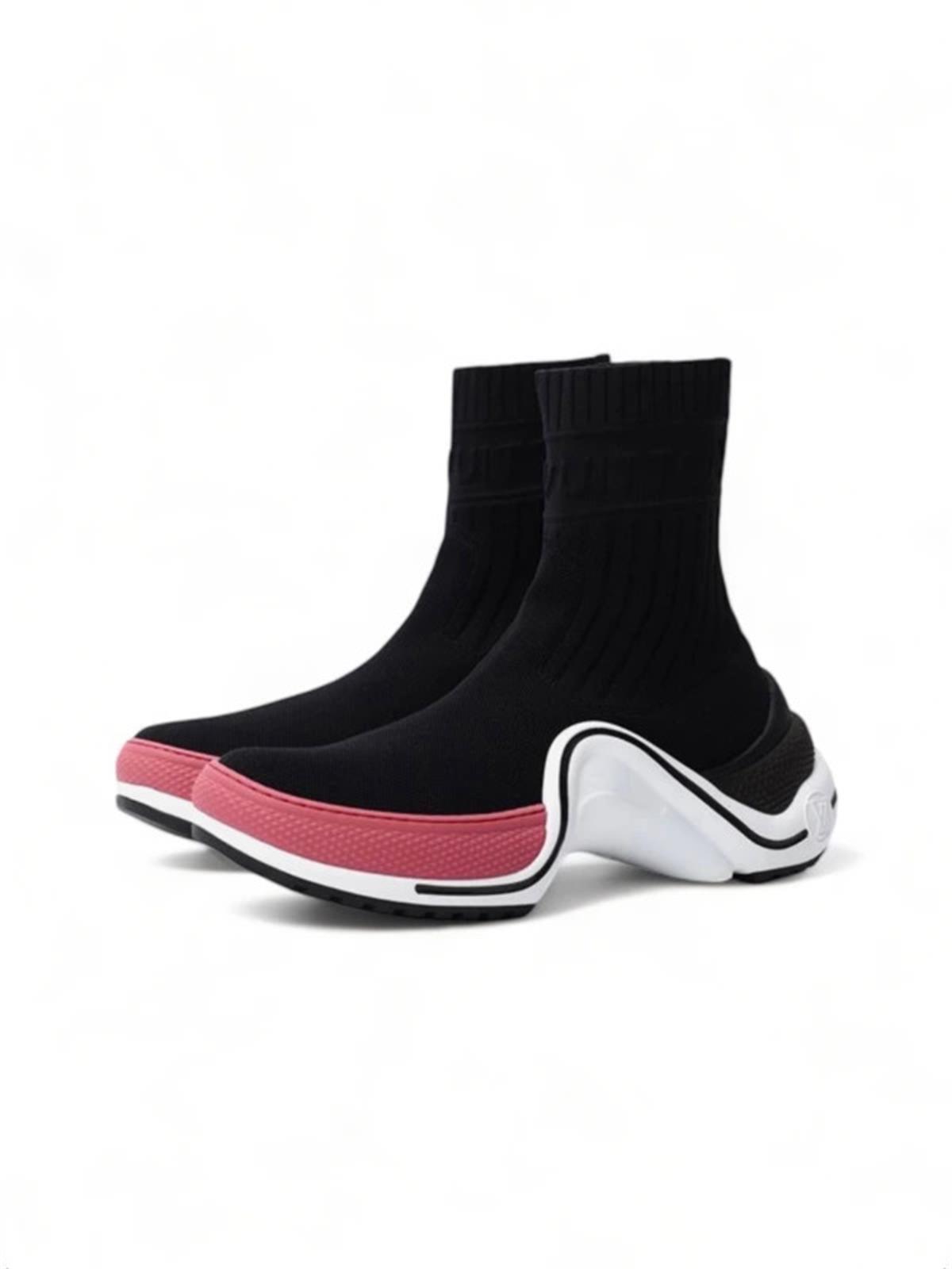 Кеды LOUIS VUITTON 39 черные носки Archlight бело-розовая подошва