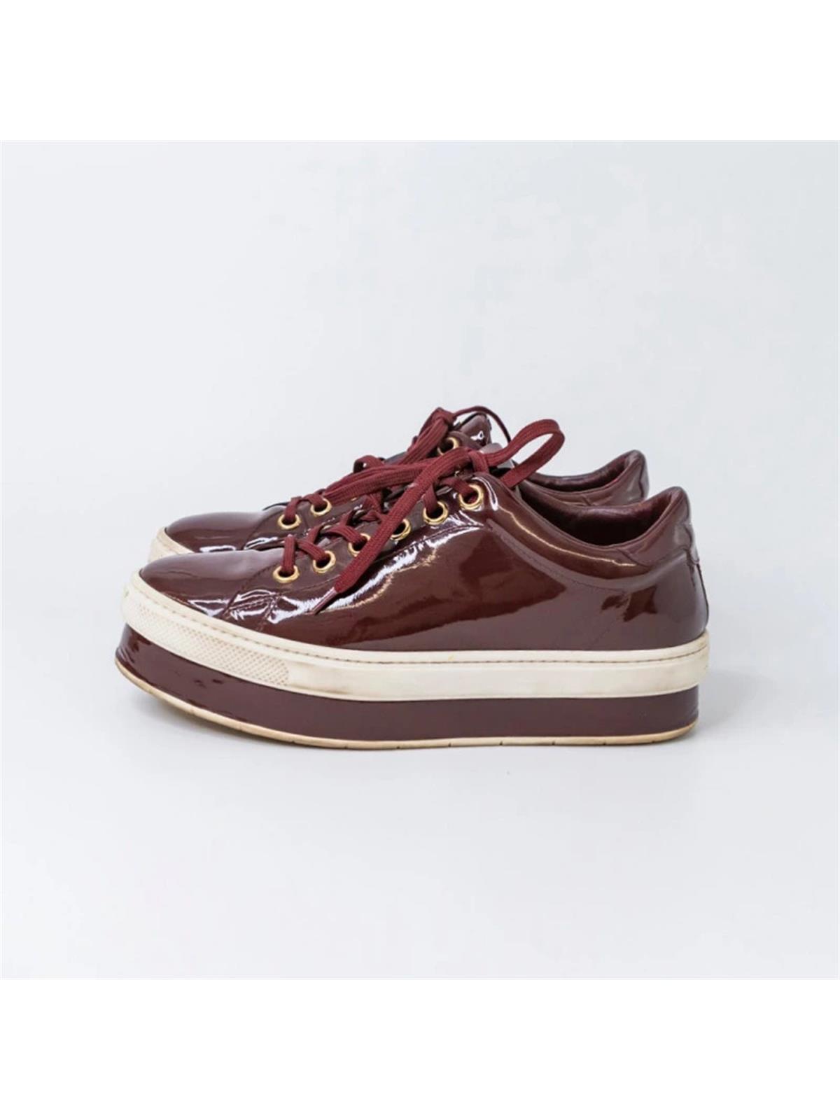 Ботинки LOUIS VUITTON 37 бордовые кожа лак подошва белая вставка резинка золотое лого