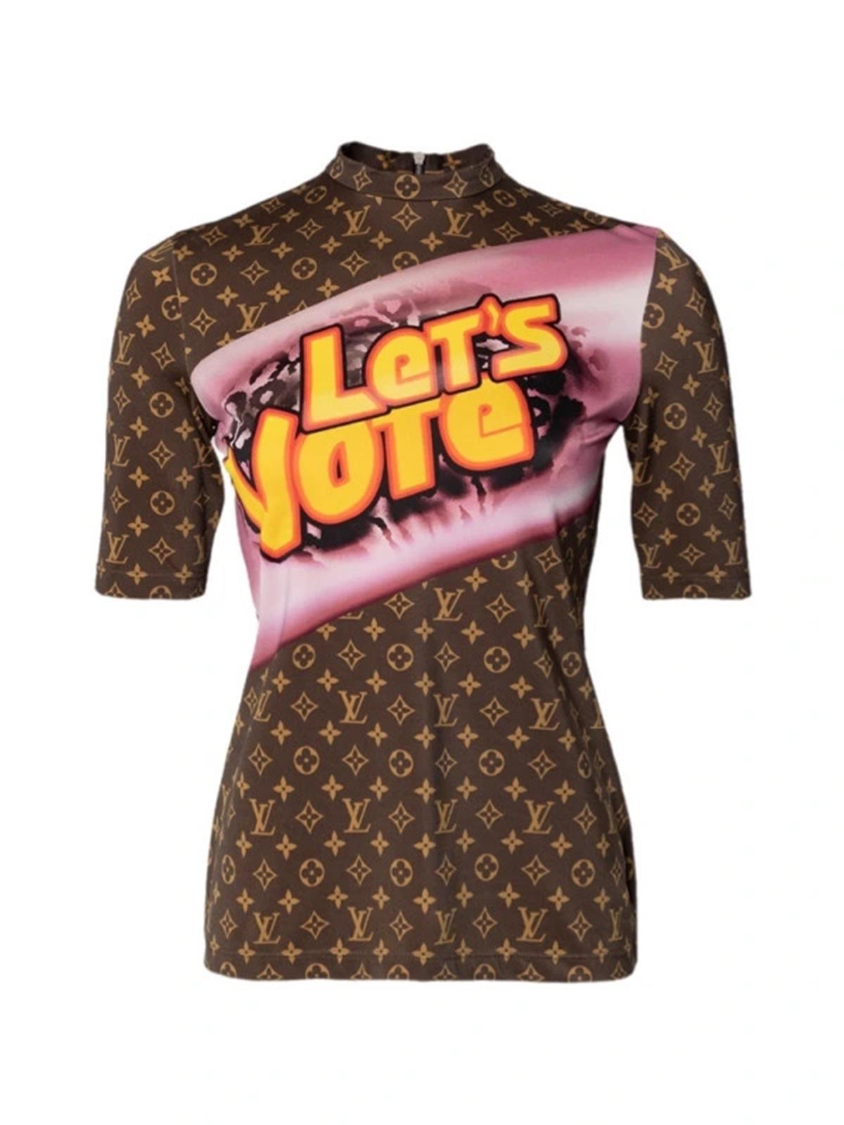 Футболка LOUIS VUITTON S коричневая лого спереди желтые надписи полиэстер