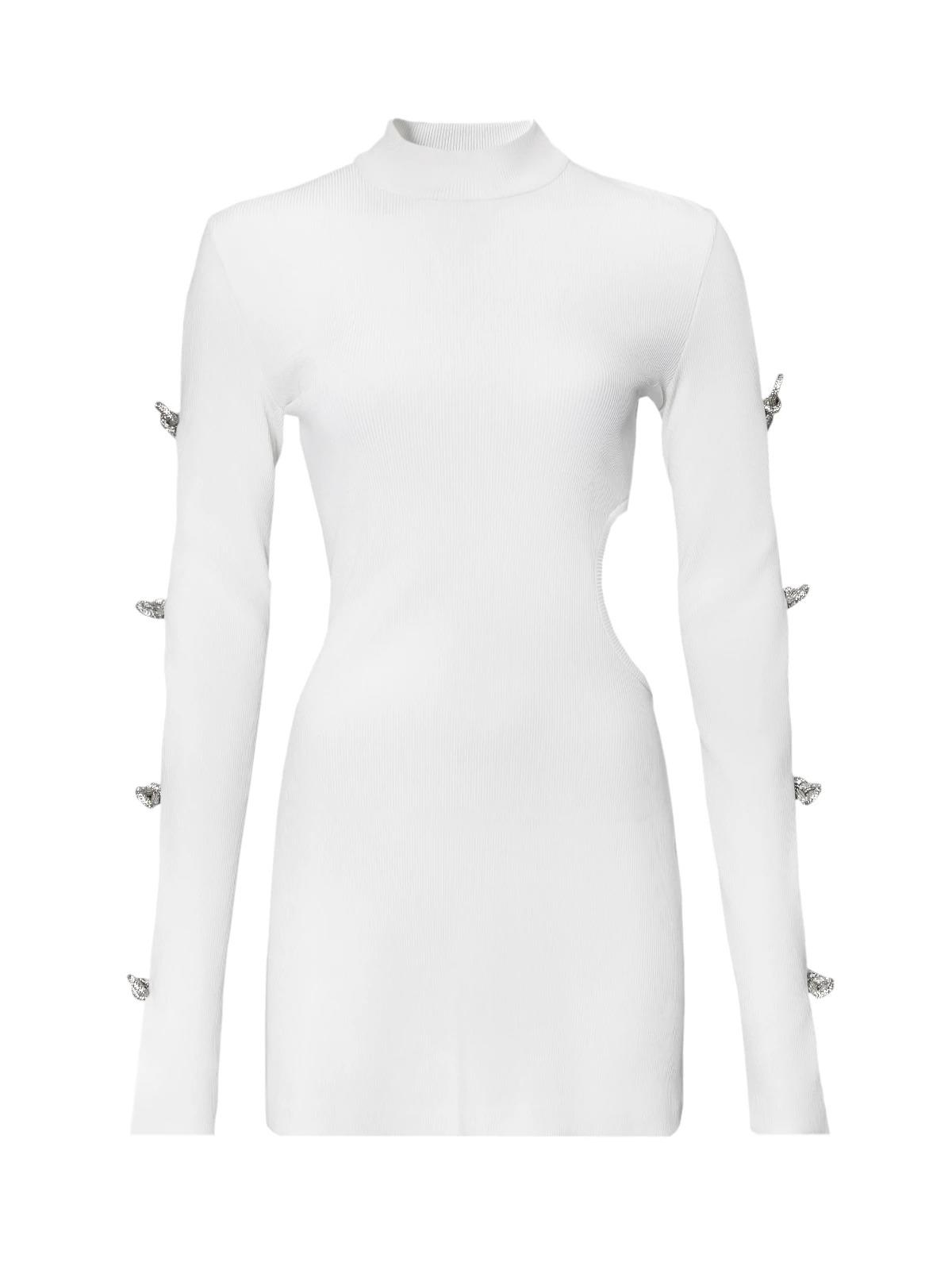 Платье MACH&MACH 36FR белое вискоза лапша сбоку вырез на рукавах бантики из страз вискоза