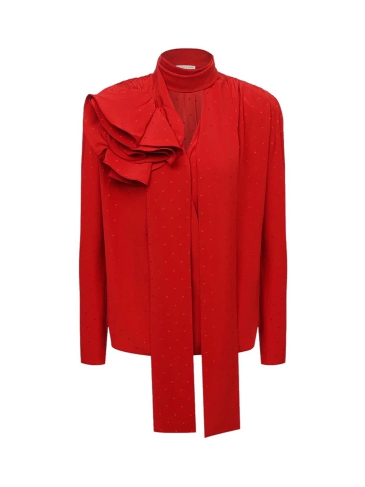 Блуза MAGDA BUTRYM FR 34 красная с подплечниками цветок шелк