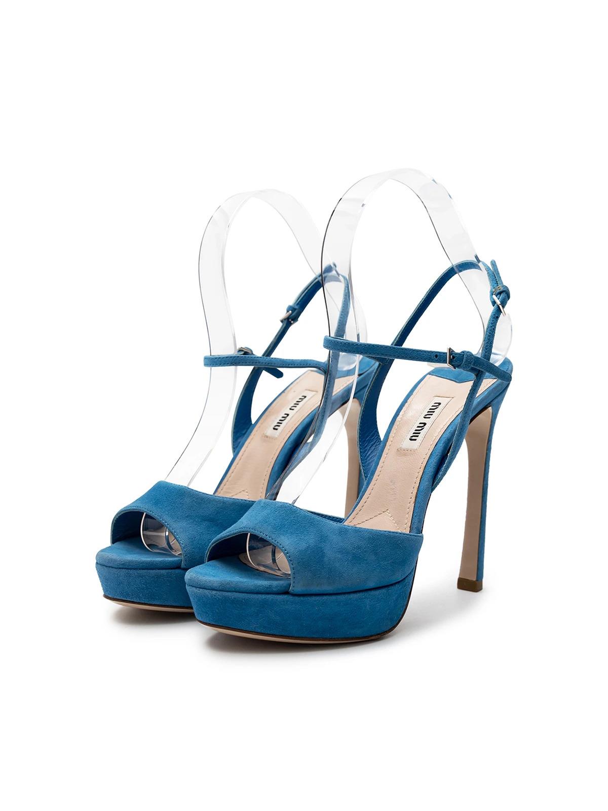 Босоножки MIU MIU 37 голубые замша тонкие ремни открытый нос и пятка
