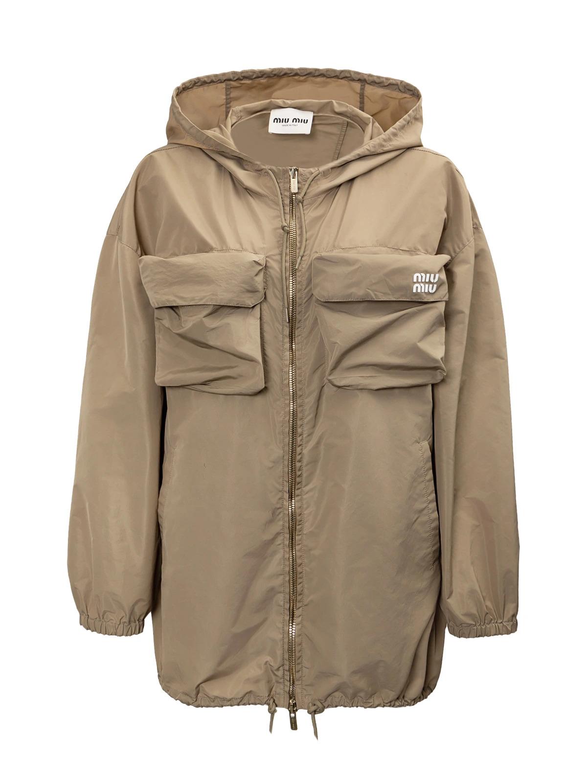 Куртка MIU MIU IT 42 бежевая на груди карманы с белым лого полиэстер