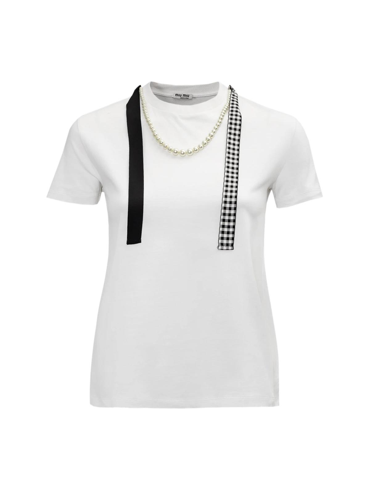 Футболка MIU MIU IT 40 белая хлопок бусы ленты