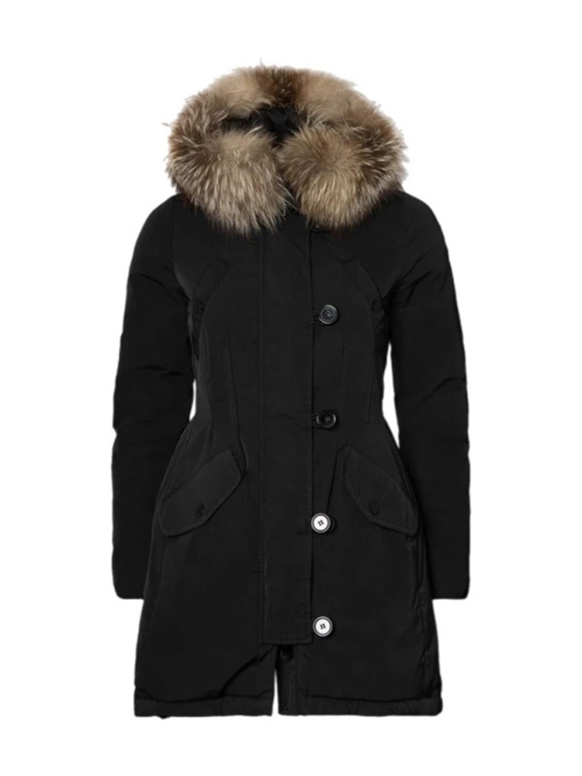 Парка MONCLER 1 черная мех хлопок на капюшоне