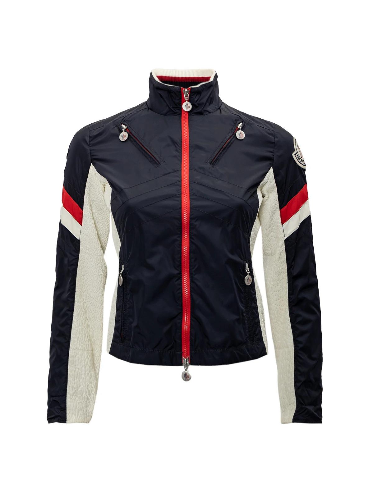 Куртка MONCLER 0 синяя белые вставки красная молния полиэстер