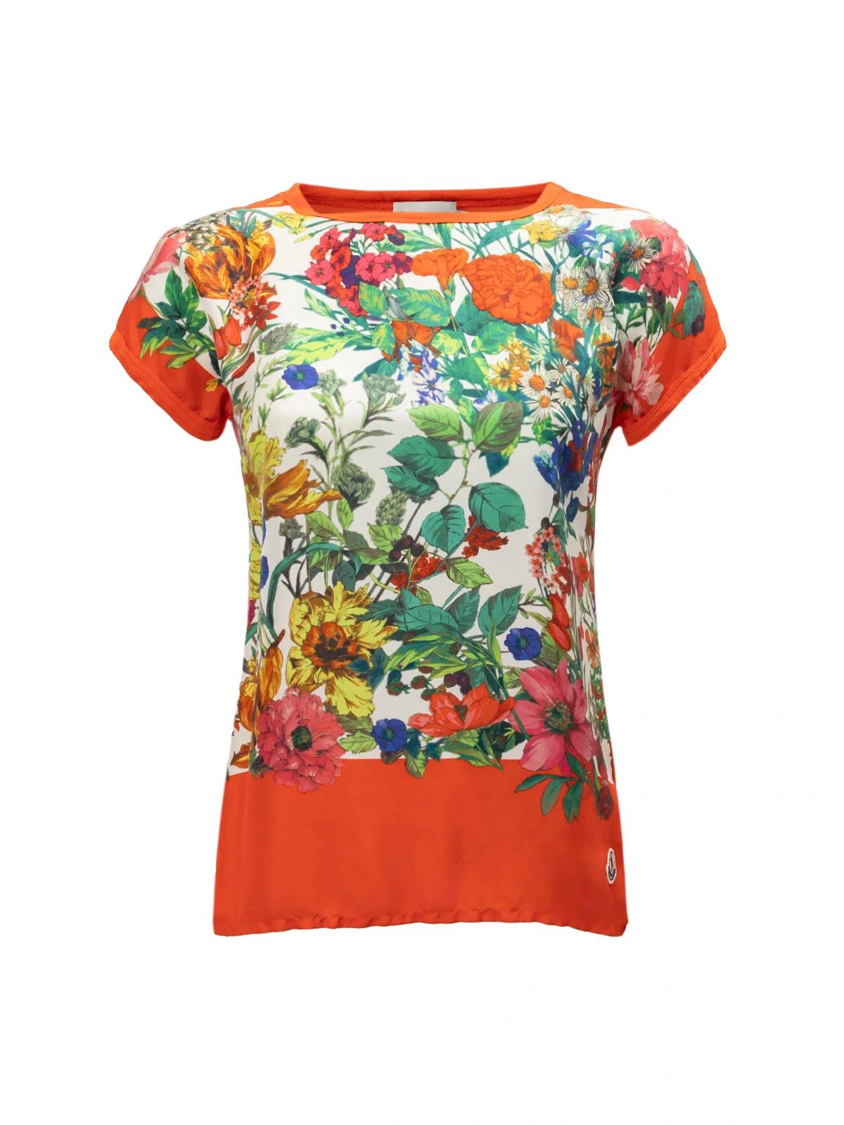 Футболка MONCLER INT S красная спереди цветы шелк модал