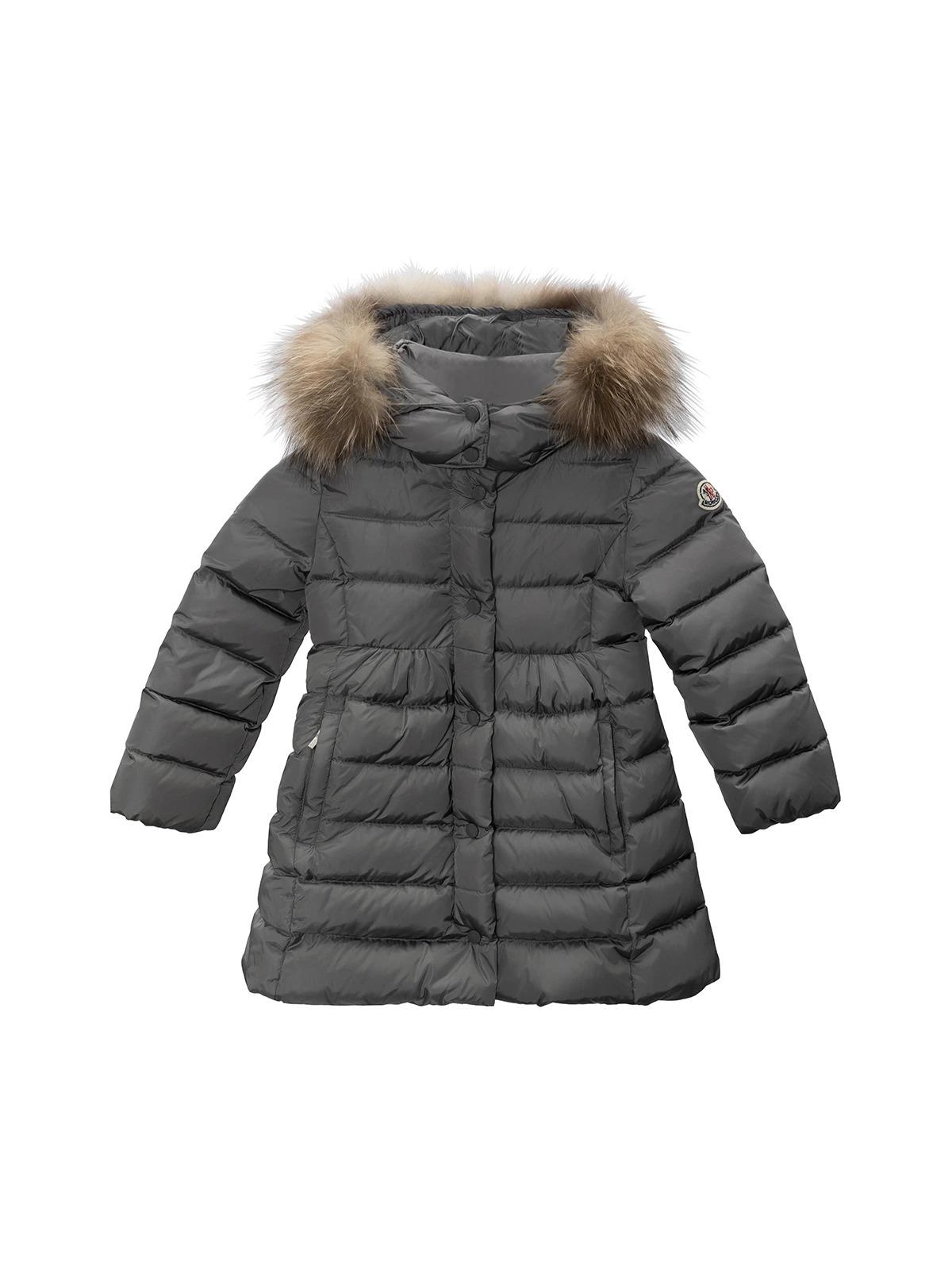 Пуховик MONCLER 98см серый с капюшоном на меху полиэстер пух детский