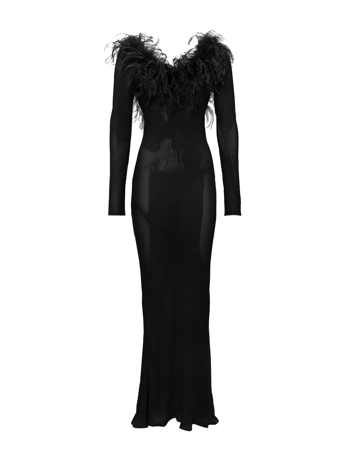 Платье NO NAME INT S черное отделка боа макси полупрозрачное вискоза