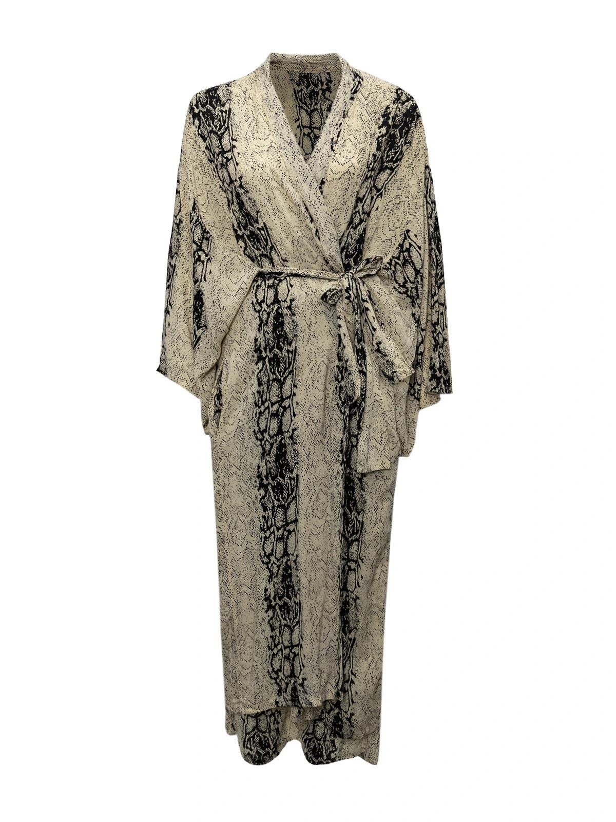 Костюм NO NAME INT S бежевый змеиный принт брюки+накидка вискоза